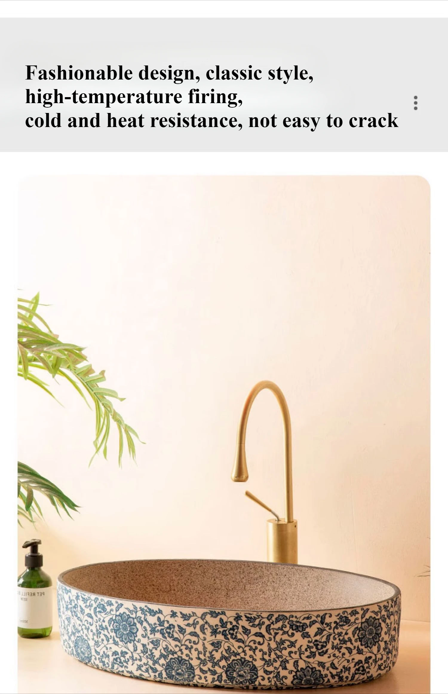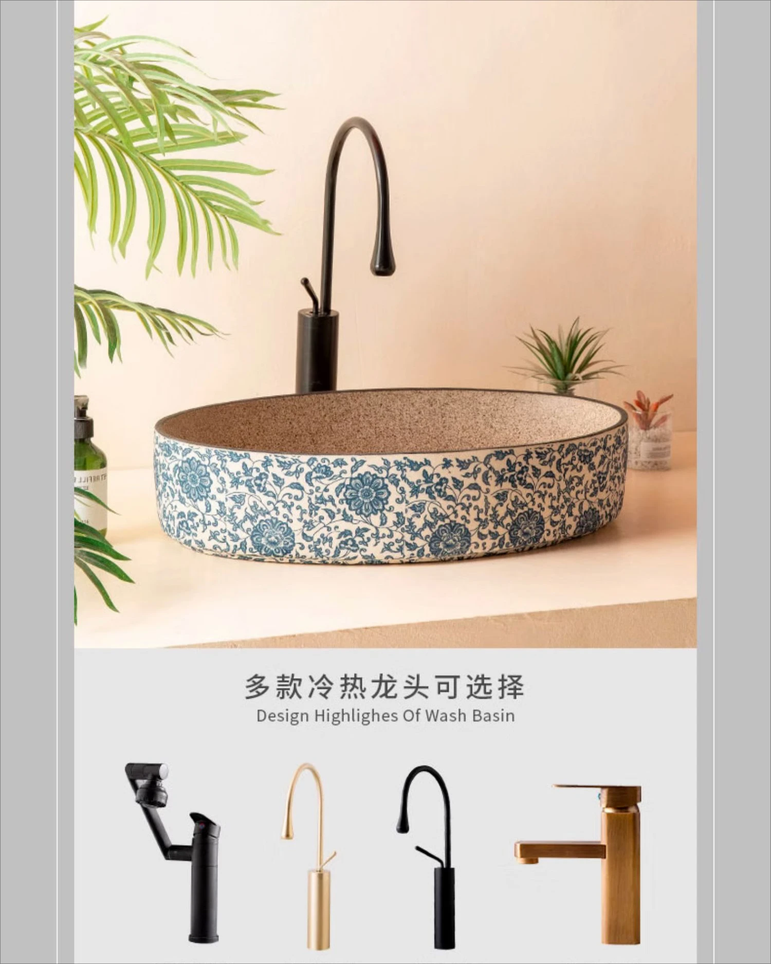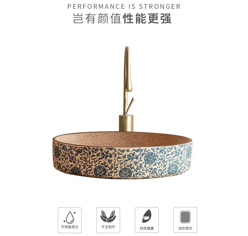 พอร์ซเลนสีฟ้าและสีขาวเซรามิคอ่างล้างหน้ารูปไข่ retro ระเบียงล้างมืออ่างล้างหน้าเดี่ยวห้องน้ําล้างหน้าห้องน้ําอ่างล้างจานอ่างล้างหน้า จาก 1 รีวิว