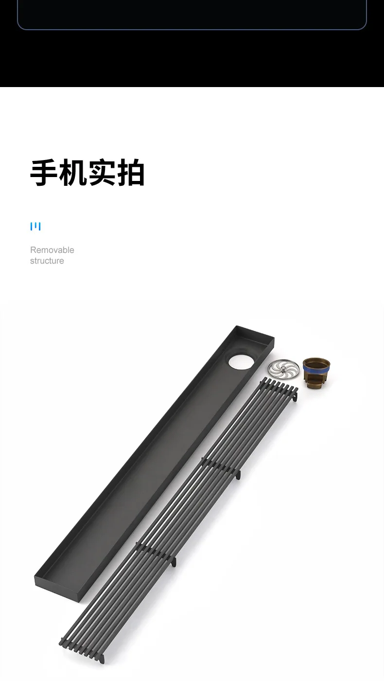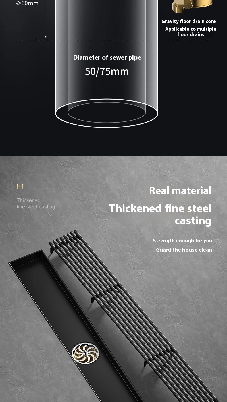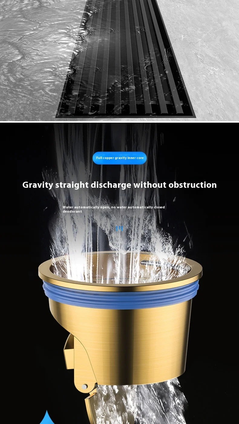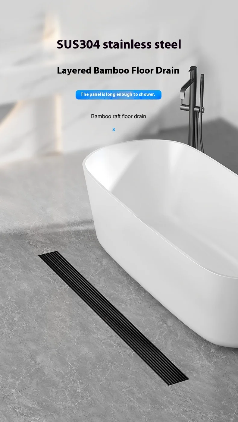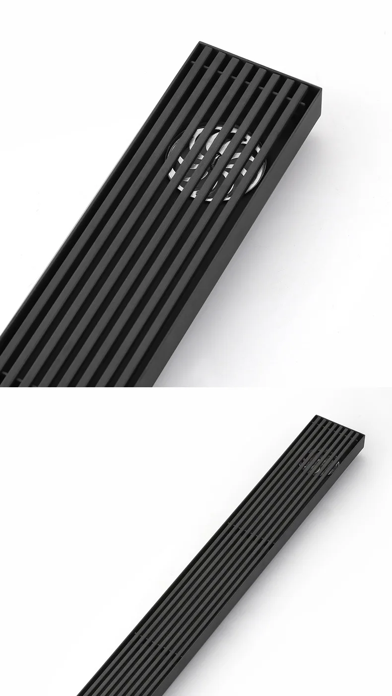 สีดํา 304 สแตนเลสสตีลยาวแถบท่อระบายน้ําห้องน้ําท่อระบายน้ําทองแดง Core Anti-กลิ่นระบายน้ํา 20-100 ซม.