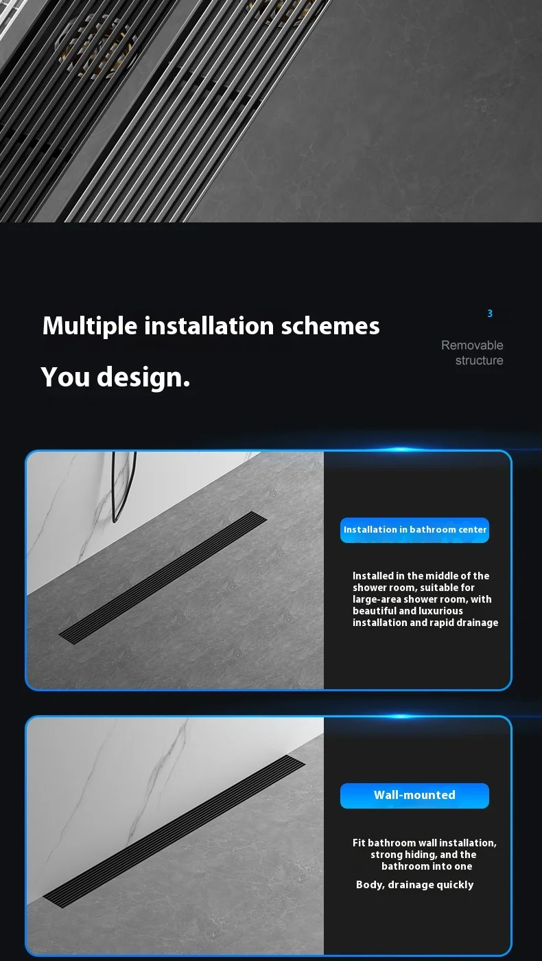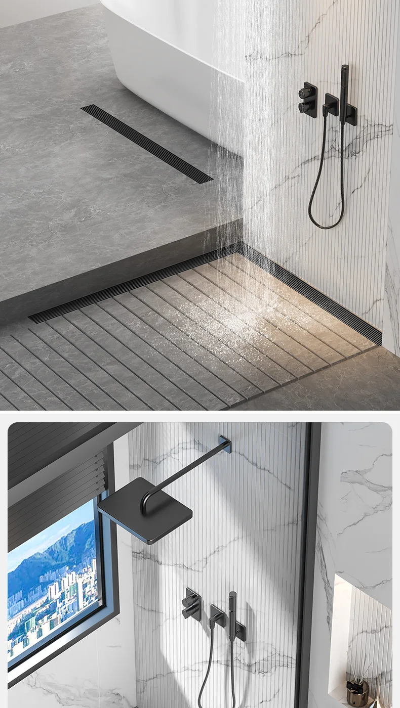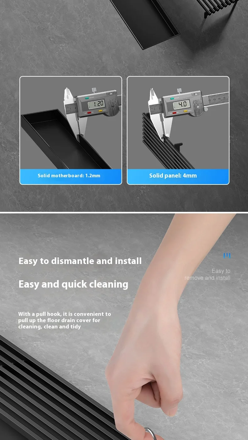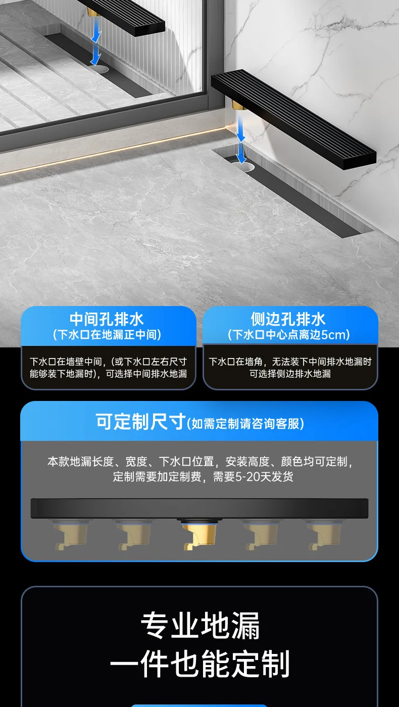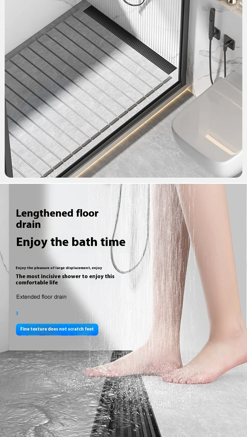 สีดํา 304 สแตนเลสสตีลยาวแถบท่อระบายน้ําห้องน้ําท่อระบายน้ําทองแดง Core Anti-กลิ่นระบายน้ํา 20-100 ซม.