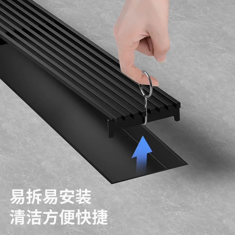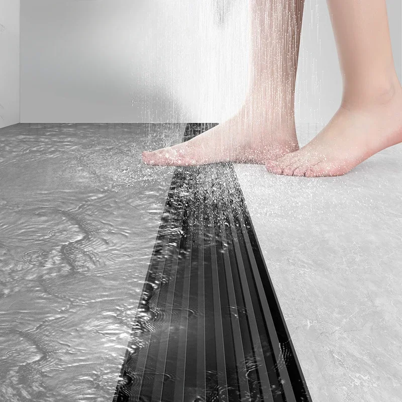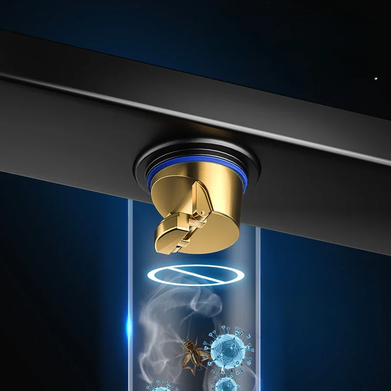 สีดํา 304 สแตนเลสสตีลยาวแถบท่อระบายน้ําห้องน้ําท่อระบายน้ําทองแดง Core Anti-กลิ่นระบายน้ํา 20-100 ซม.