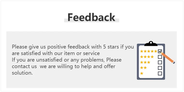 บริการ: ความพึงพอใจของคุณคือสิ่งที่เราให้ความสำคัญเป็นอันดับแรก โปรดซื้อผลิตภัณฑ์ของเราอย่างสบายใจหากคุณไม่พอใจกับผลิตภัณฑ์ของเราหรือมีคำถามใด ๆ โปรดติดต่อเรา