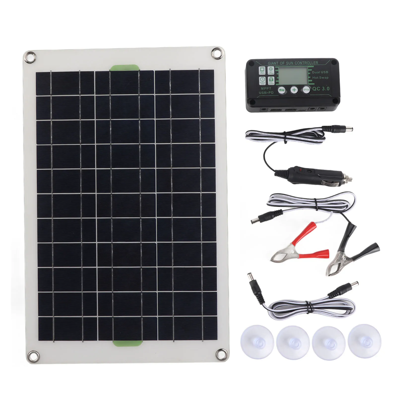 แผงโซลาร์เซลล์ 30 วัตต์ กันน้ำ สำหรับชาร์จโทรศัพท์ รถบ้าน รถยนต์ เครื่องเล่น MP3 แท็บเล็ต ใช้กลางแจ้ง สำรองพลังงานแบตเตอรี่