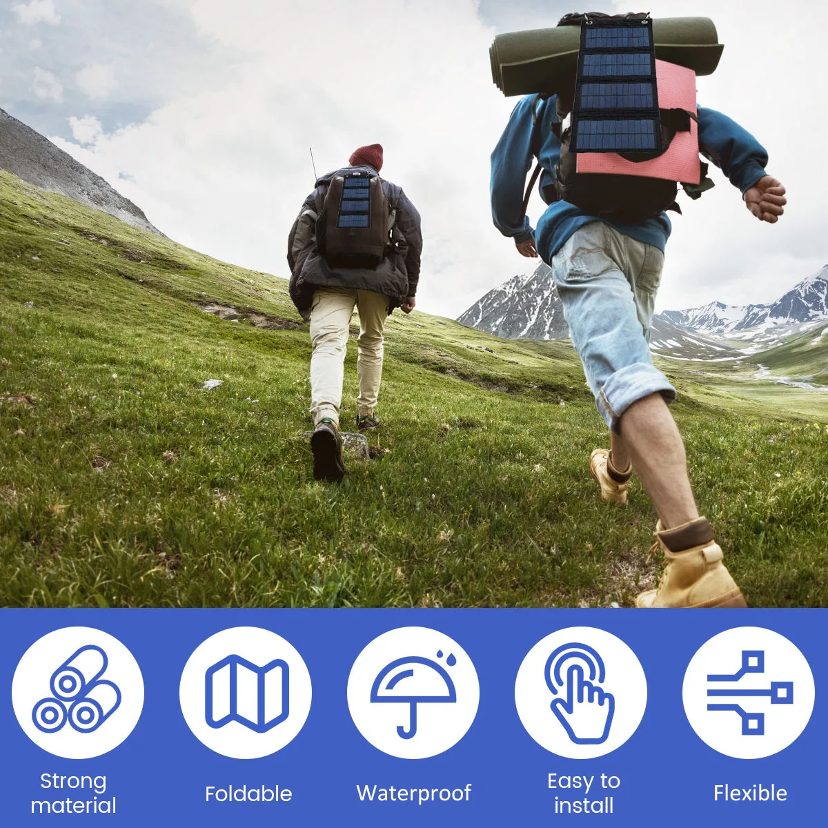 แผงโซลาร์เซลล์แบบพกพาพร้อม USB สำหรับการเดินป่า ตั้งแคมป์ ชาร์จแบตเตอรี่โทรศัพท์มือถือ แบตสำรอง แผงชาร์จ