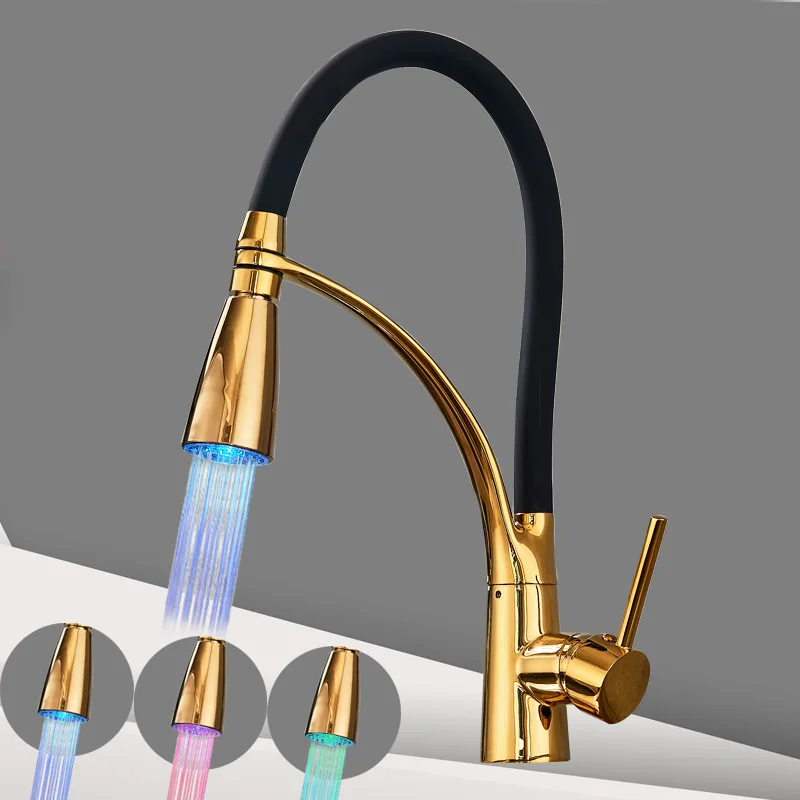 แปรงนิกเกิลอ่างล้างจานก๊อกน้ำดึงลงหมุนSpoutอ่างล้างจานแตะดาดฟ้าห้องน้ำก๊อกผสมน้ำร้อนและเย็น
