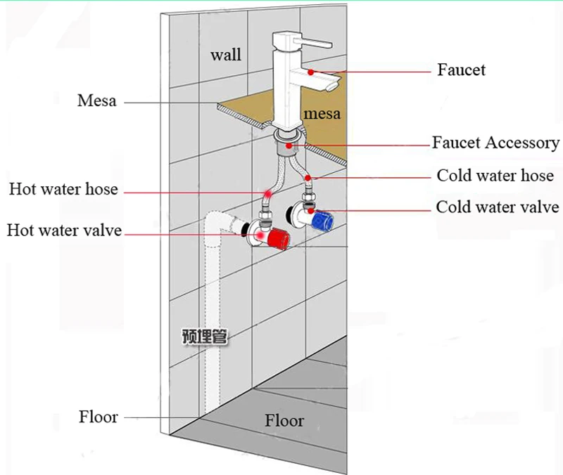 อุปกรณ์เสริม: สายยางน้ำร้อนและน้ำเย็นแบบยืดหยุ่น 2 เส้น อุปกรณ์ติดตั้ง