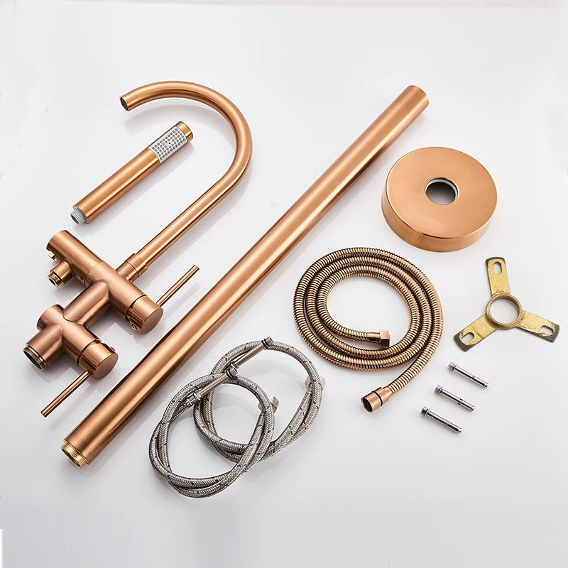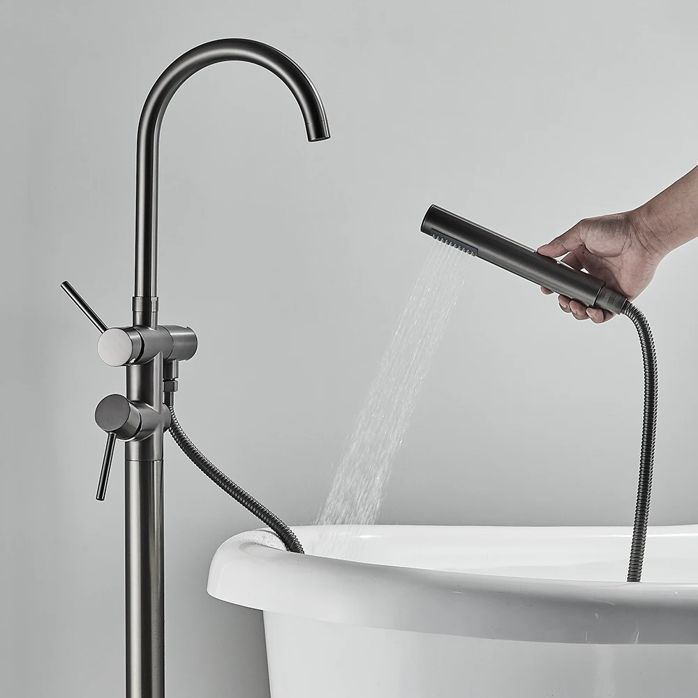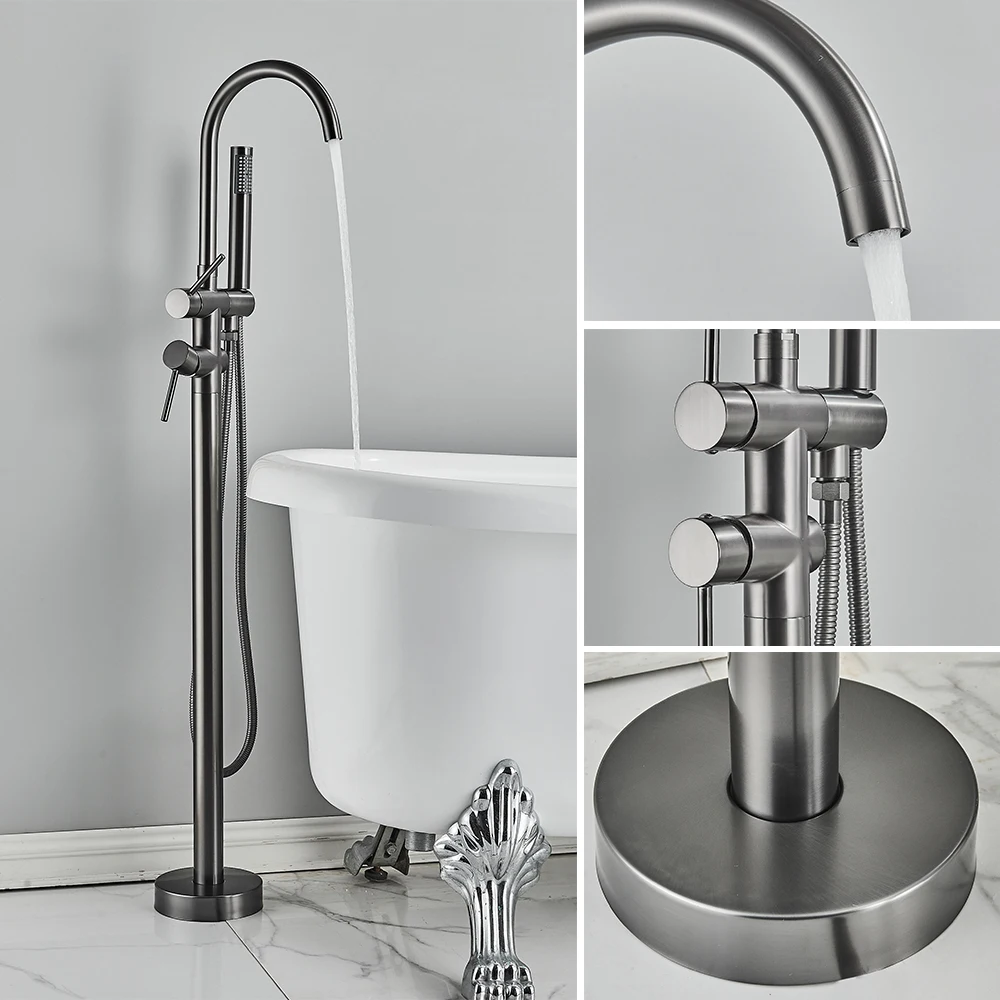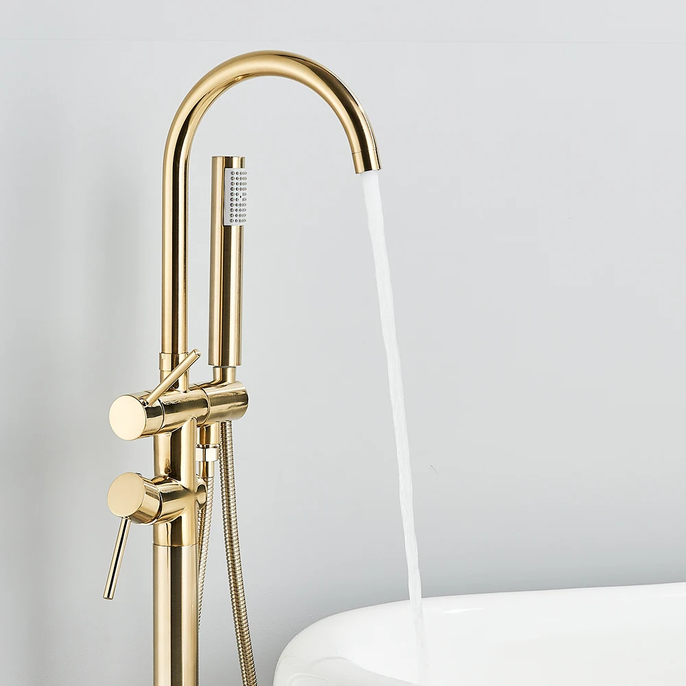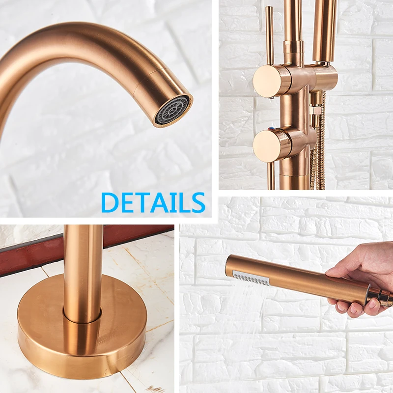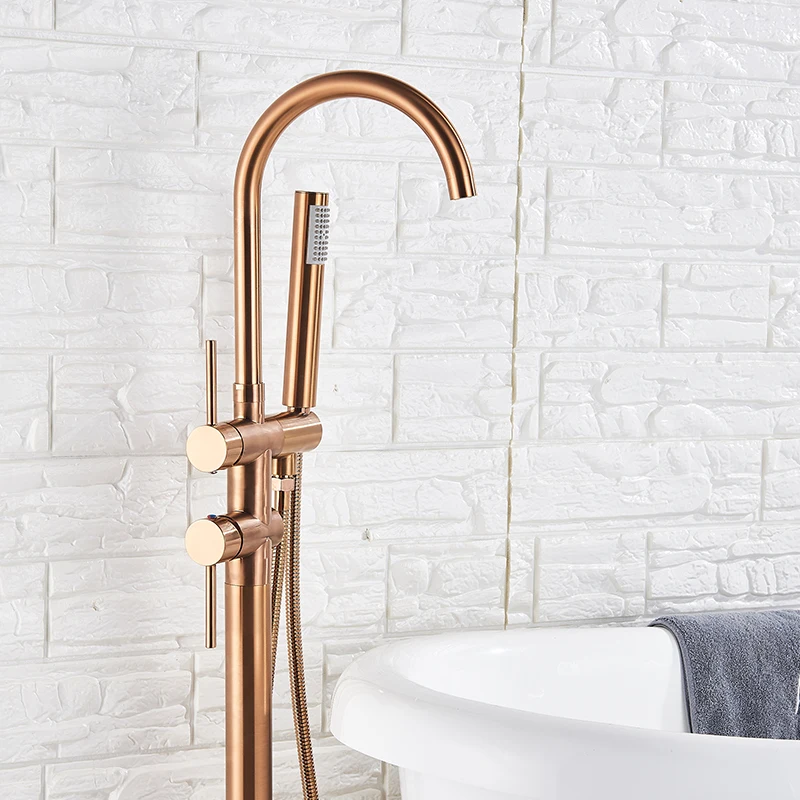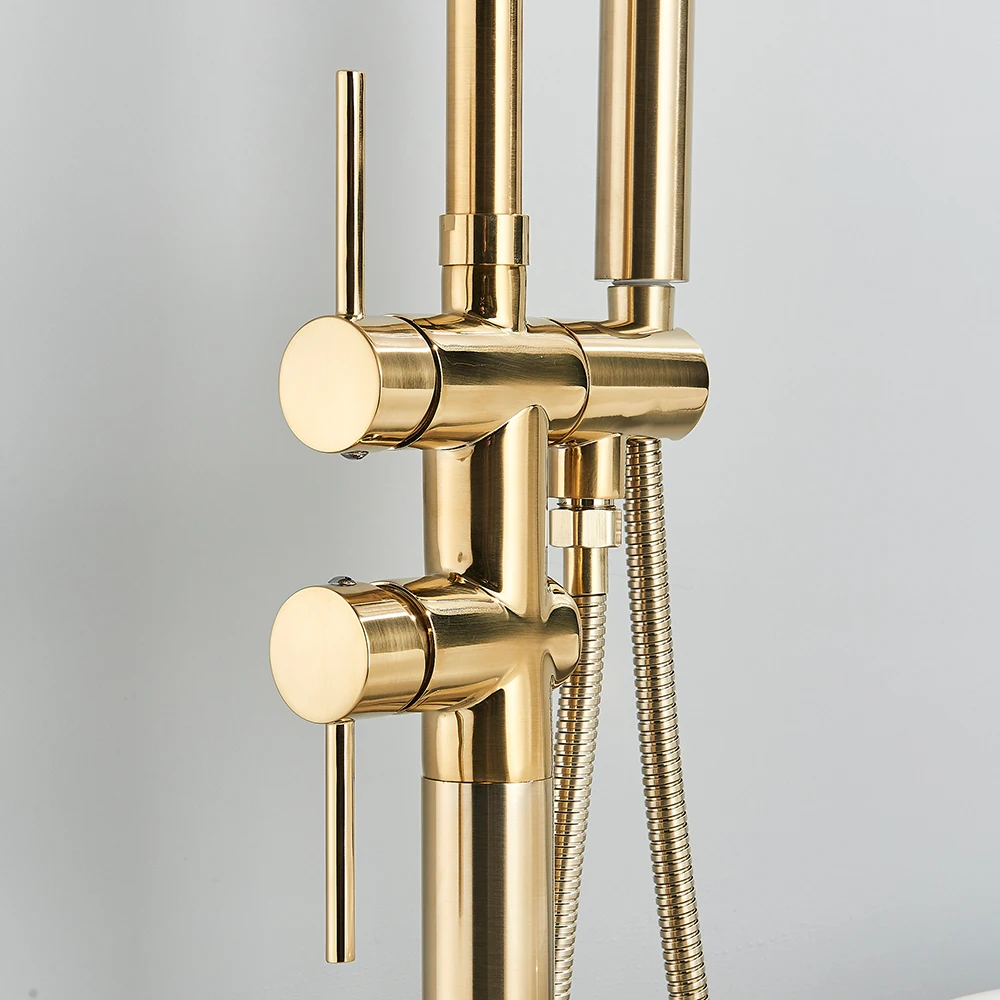 Rozin แปรงทองห้องน้ําก๊อกน้ําชั้นติดตั้งอิสระอ่างอาบน้ําฝักบัวก๊อกน้ําร้อนเย็น Crane พร้อม Handshower