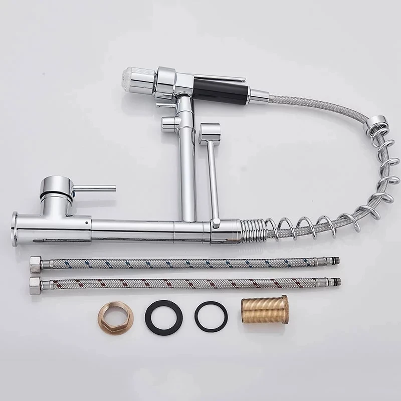 ฤดูใบไม้ผลิ LED ก๊อกน้ําห้องครัว Chrome ดึง Sprayer Dual Spout เดี่ยว TAP ก๊อกน้ําอ่างล้างจาน 360 หมุนก๊อกน้ําห้องครัว