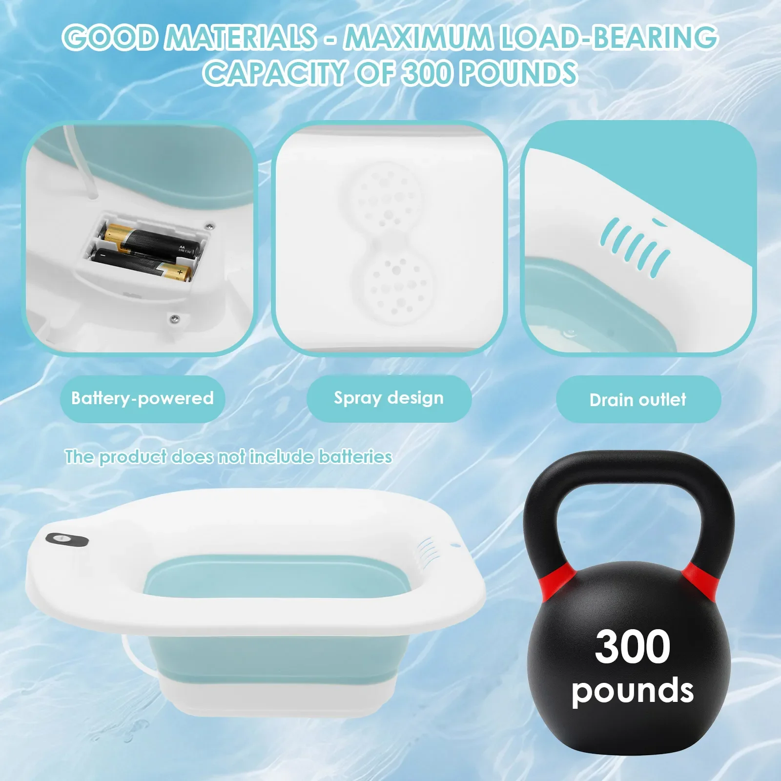 อ่างอาบน้ำพับได้แบบพกพา ปรับระดับได้ตามหลักสรีรศาสตร์ พร้อมหัวฉีดน้ำสำหรับอาบน้ำแบบนั่ง ใช้สำหรับแช่ตัว เหมาะสำหรับหญิงตั้งครรภ์และผู้ป่วยริดสีดวงทวาร