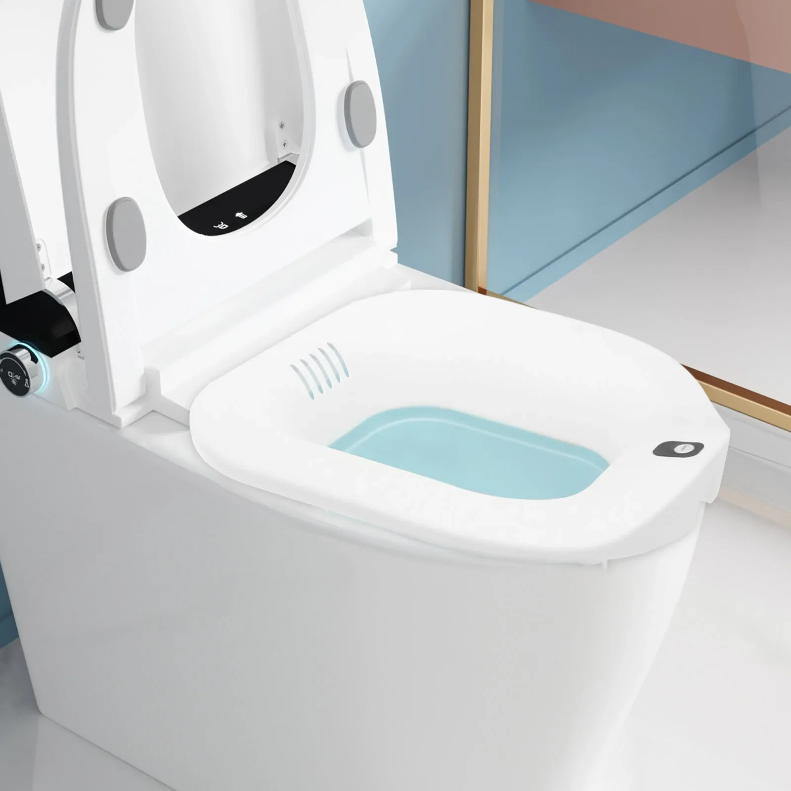 คุณสมบัติเด่น: อ่างน้ำไฟฟ้าสำหรับนั่งแช่นี้เหมาะอย่างยิ่งสำหรับการบรรเทาอาการไม่สบายสำหรับผู้ที่มีปัญหาเกี่ยวกับริดสีดวงทวารหรือหลังคลอด