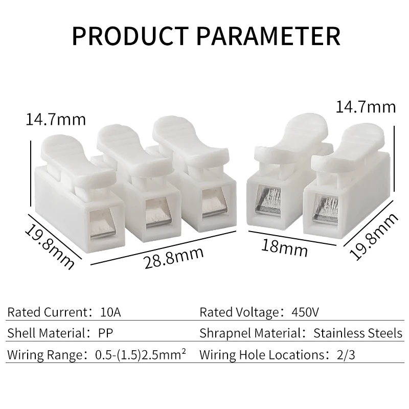 CMK823 Quick 2/3P Splice ไม่มีสายเคเบิลสายไฟกด Terminal Block ง่ายปลอดภัยฤดูใบไม้ผลิ 0.2-1.5 มม.
