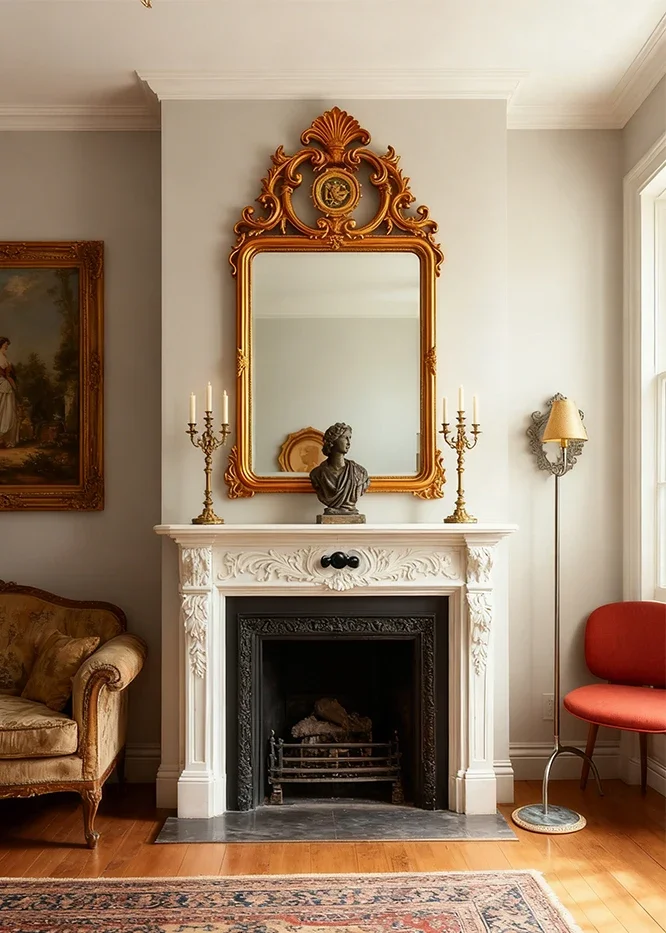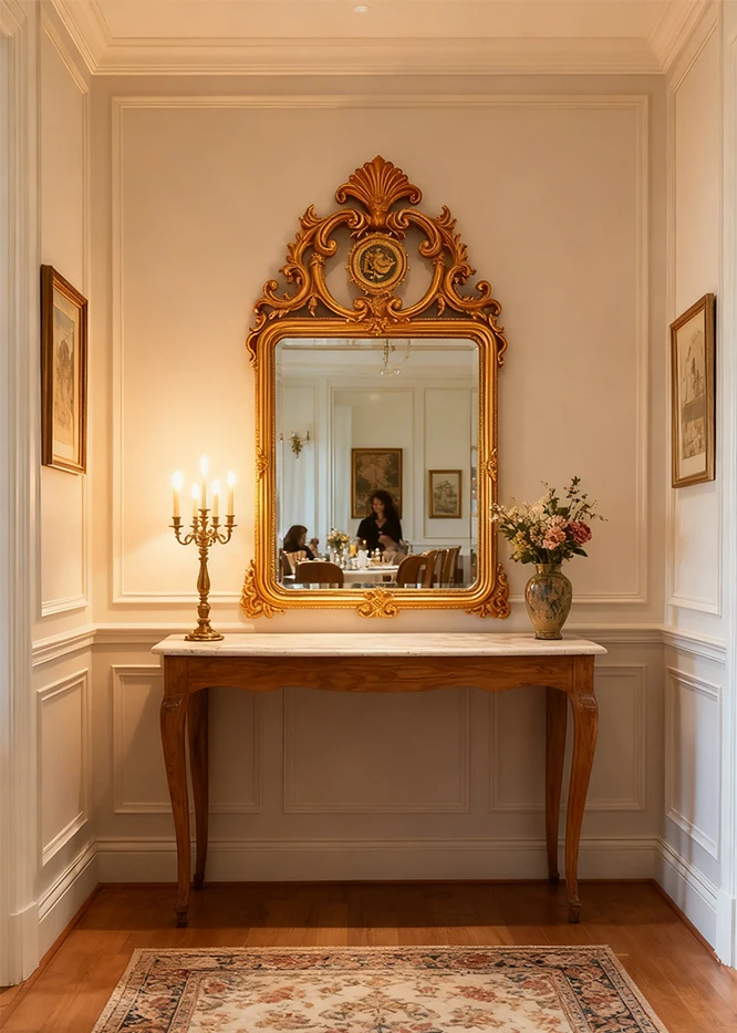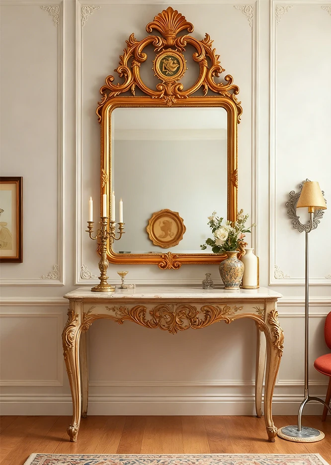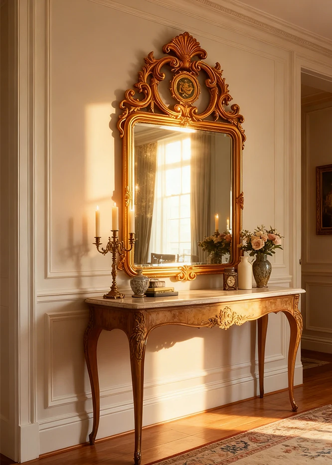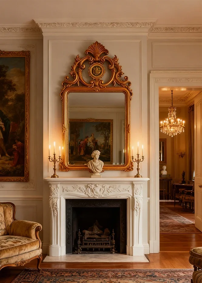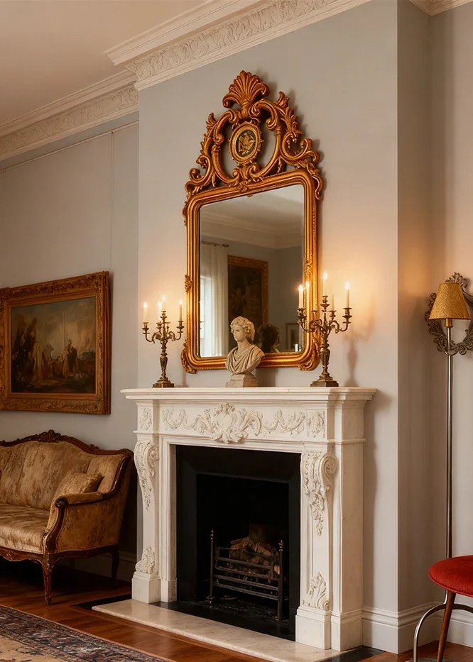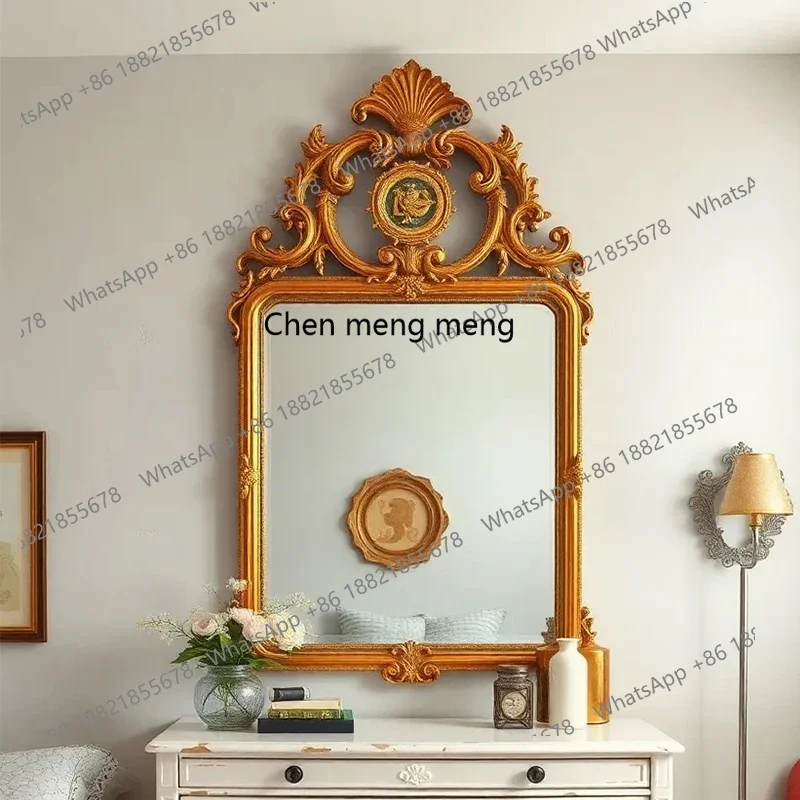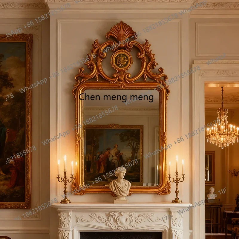 กระจกตกแต่งสไตล์ฝรั่งเศสแบบเรโทรใหม่ล่าสุด กระจกติดผนังห้องนั่งเล่นสไตล์อเมริกัน กระจกติดผนังเตาผิง กระจกแขวนผนังสไตล์ยุโรปคลาสสิกแกะสลักสำหรับห้องน้ำ