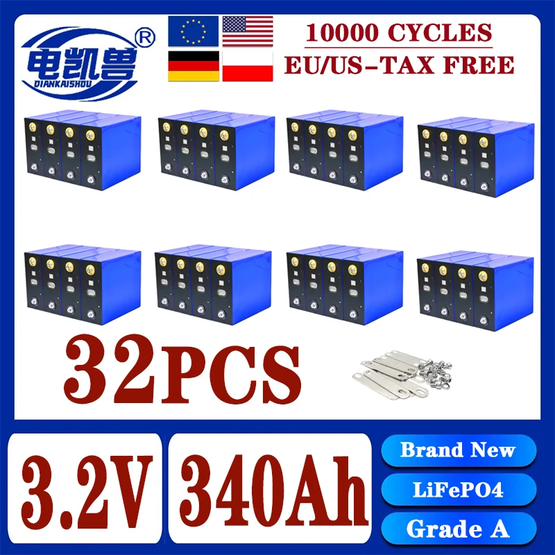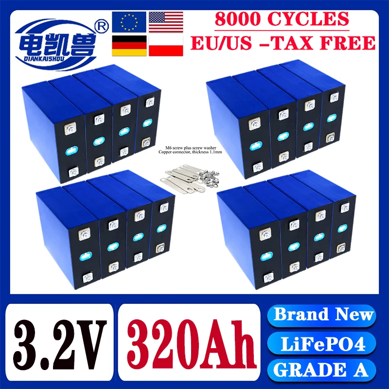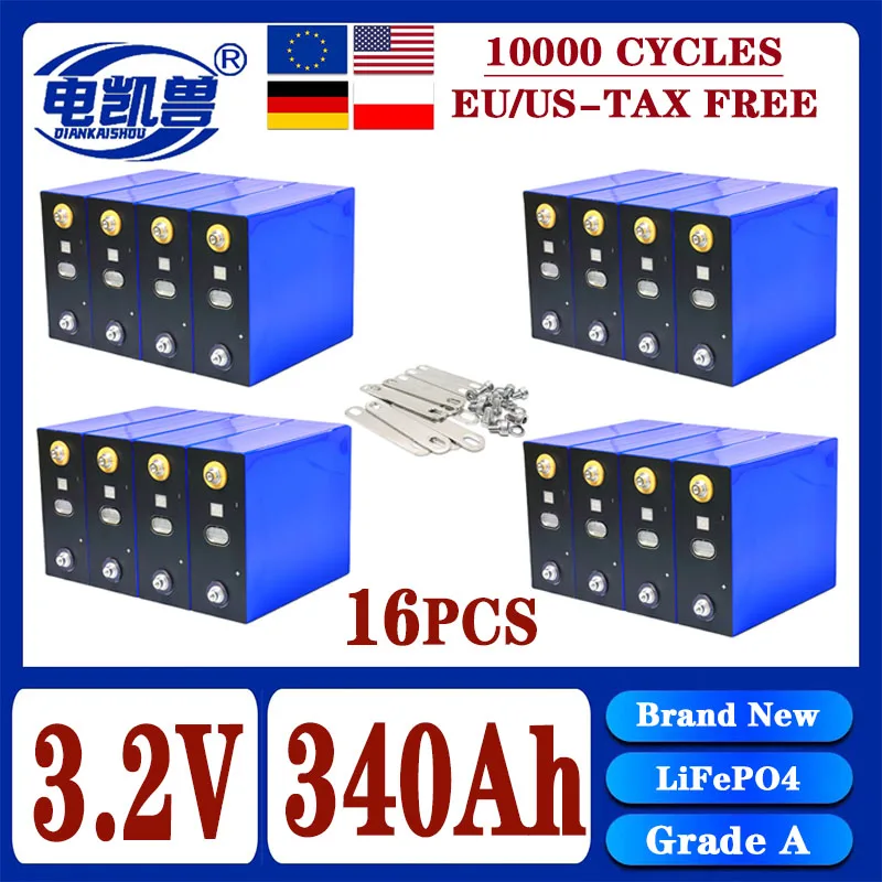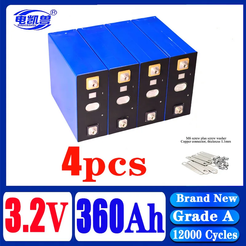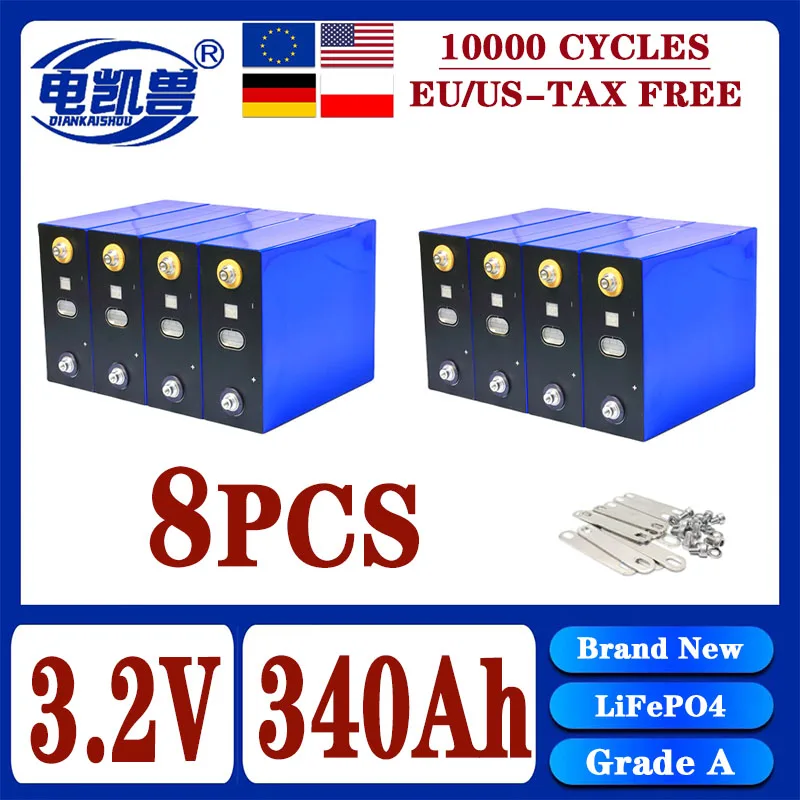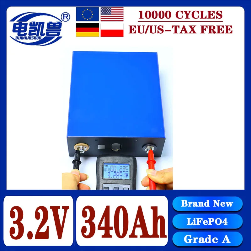 แบตเตอรี่ LiFePO4 3.2V แบบชาร์จได้ ขนาด 360Ah 340Ah 320Ah เหมาะสำหรับระบบพลังงานแสงอาทิตย์ DIY 12V 24V 48V สำหรับคาราวานและเรือ ไม่มีภาษี