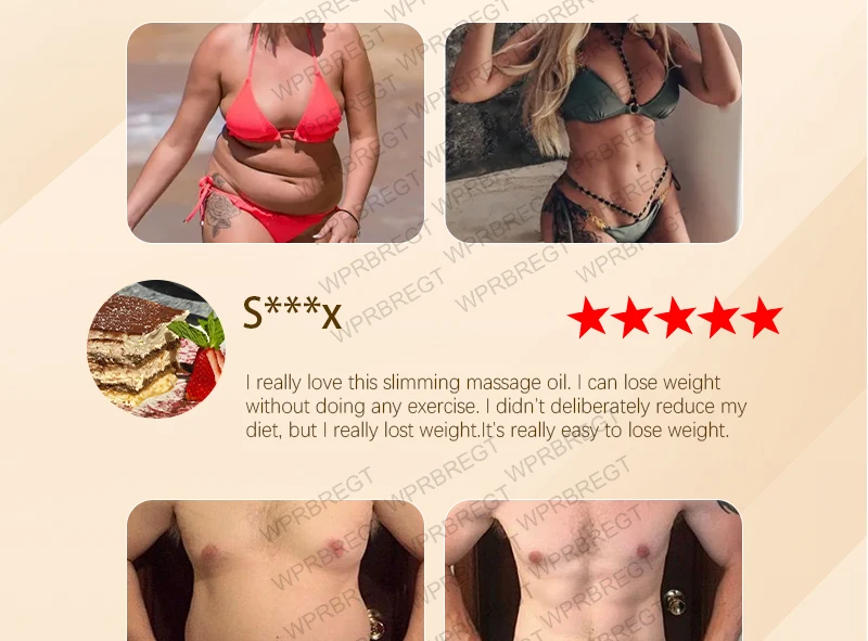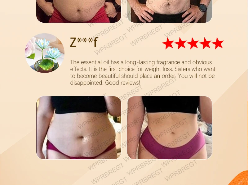 ก่อนหน้านี้ ฉันมีไขมันส่วนเกินบริเวณหน้าท้องมากจนสามารถบีบได้ง่าย และฉันมักจะดูเทอะทะเมื่อสวมใส่เสื้อผ้ารัดรูป ฉันตัดสินใจลองใช้น้ำมันนี้และนวดเป็นเวลา 10 นาทีทุกวัน เนื้อสัมผัสสบายและเบามาก รู้สึกอบอุ่นและผ่อนคลายหลังจากนวด แต่ไม่เหนียวเหนอะหนะเลย แม้แต่ผิวแพ้ง่ายของฉันก็ไม่แดง ตอนนี้หน้าท้องของฉันดูชัดเจนขึ้นเมื่อฉันใส่บิกินี่ และผิวที่หย่อนคล้อยก่อนหน้านี้ก็กระชับขึ้น แม้แต่เพื่อนสนิทของฉันยังถามว่าฉันได้รับการรักษาอย่างลับๆ หรือเปล่า! ตอนนี้ฉันรู้สึกมั่นใจพอที่จะใส่ชุดว่ายน้ำตัวโปรดของฉันถ่ายรูปได้แล้ว น้ำมันนี้คือผู้ช่วยชีวิตในฤดูร้อนของฉันอย่างแท้จริง!