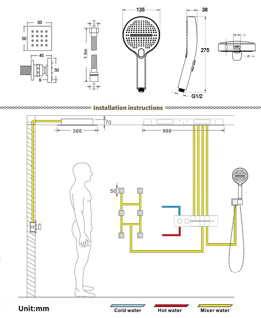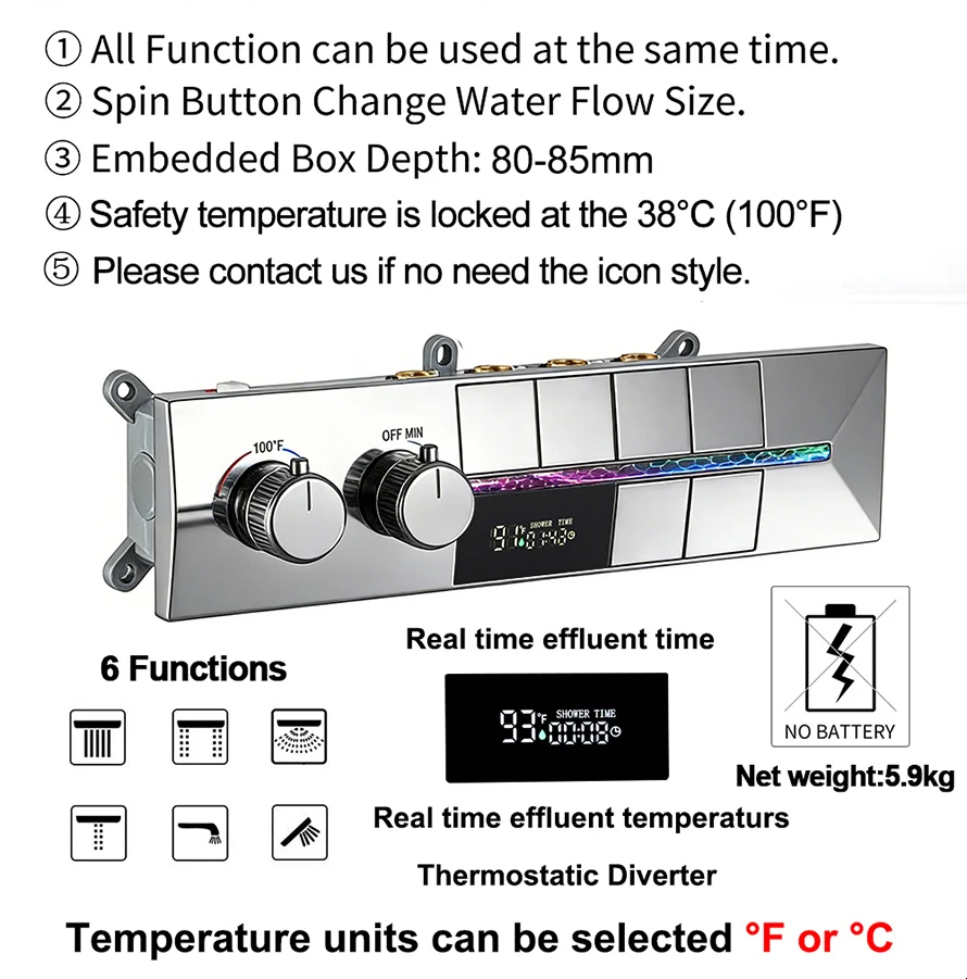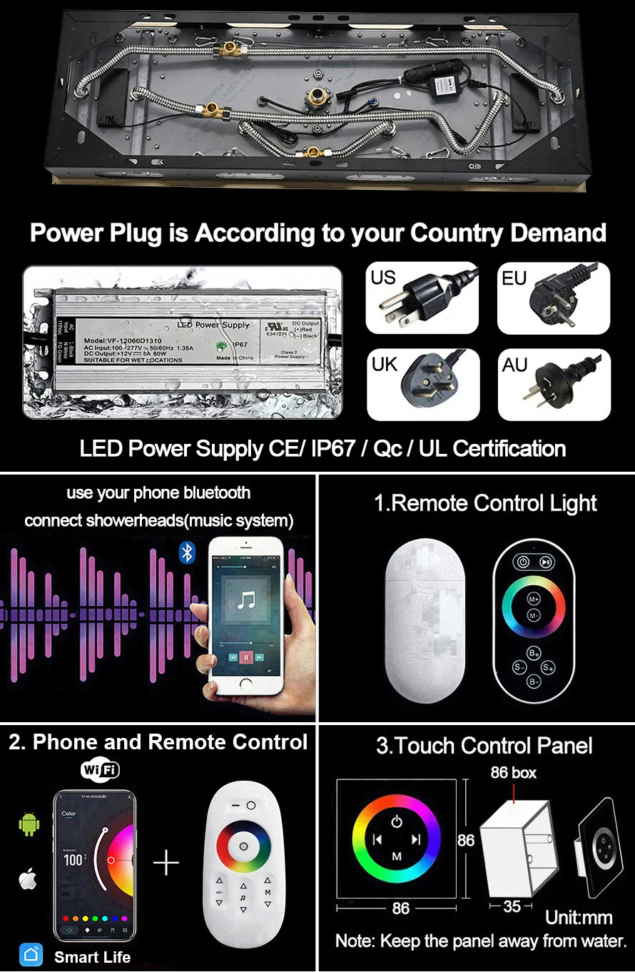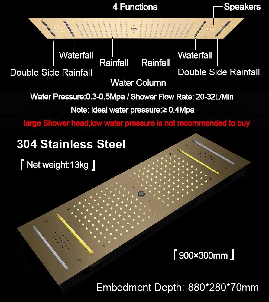 Rainfall, Waterfall, Water Column, Side Waterfall, Hand Shower, Shower Body Jet |