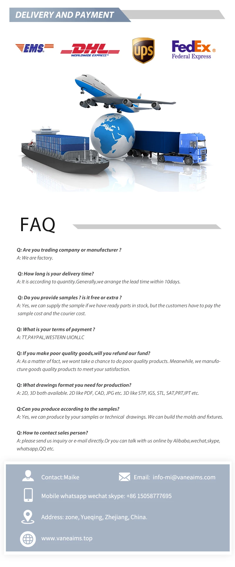 หากคุณมีคำถามหรือข้อสงสัยใดๆ เกี่ยวกับนโยบายการจัดส่งของเรา เราขอแนะนำให้คุณติดต่อเราโดยใช้รายละเอียดด้านล่างนี้: