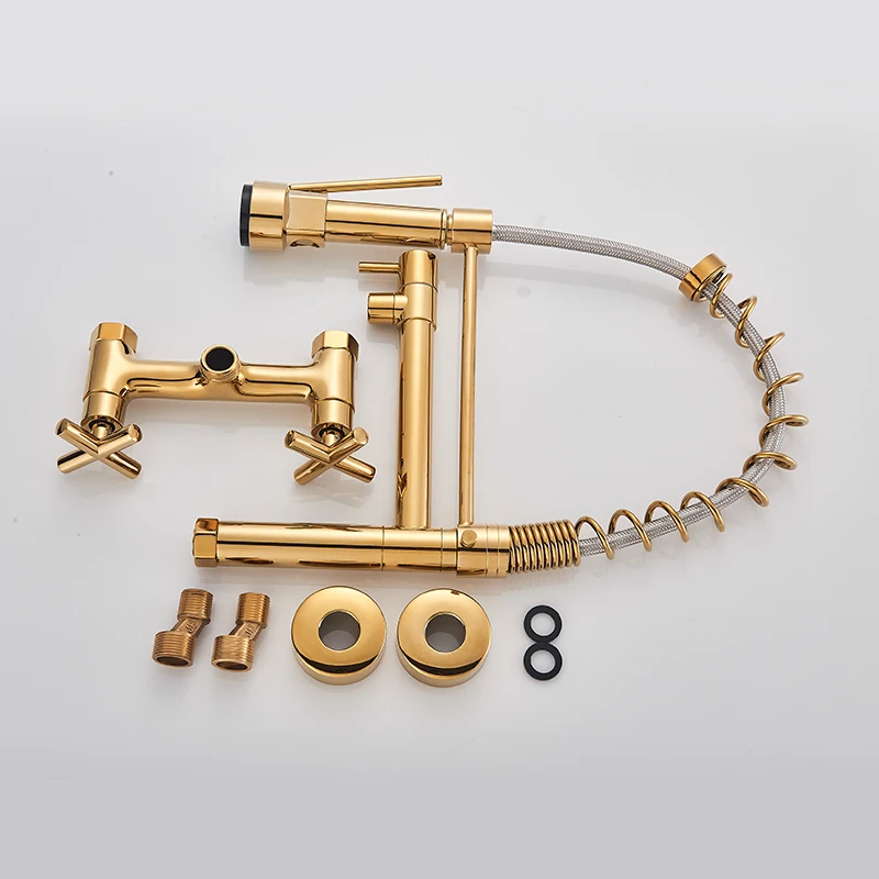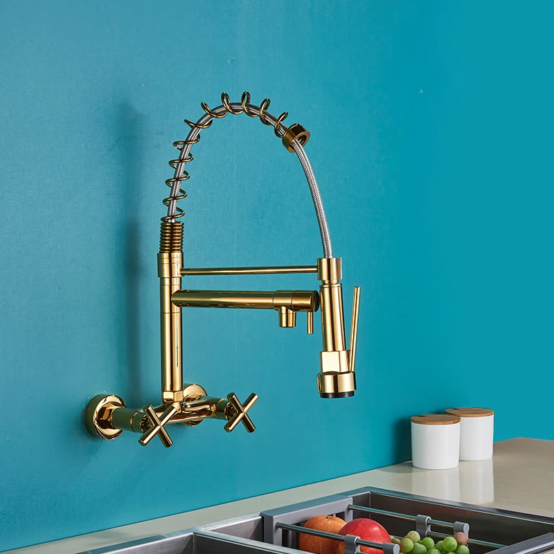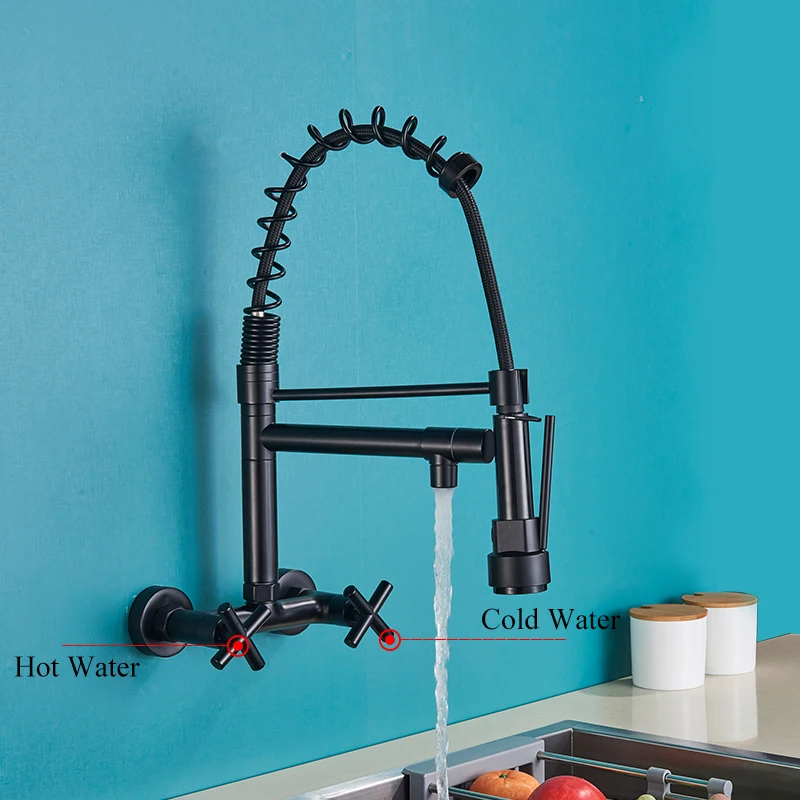 ติดผนังก๊อกน้ำห้องครัวฤดูใบไม้ผลิมือถือSpoutร้อนเย็นน้ำKitchen Tap MatteสีดำดึงRoationอ่างล้างจานTapเครน