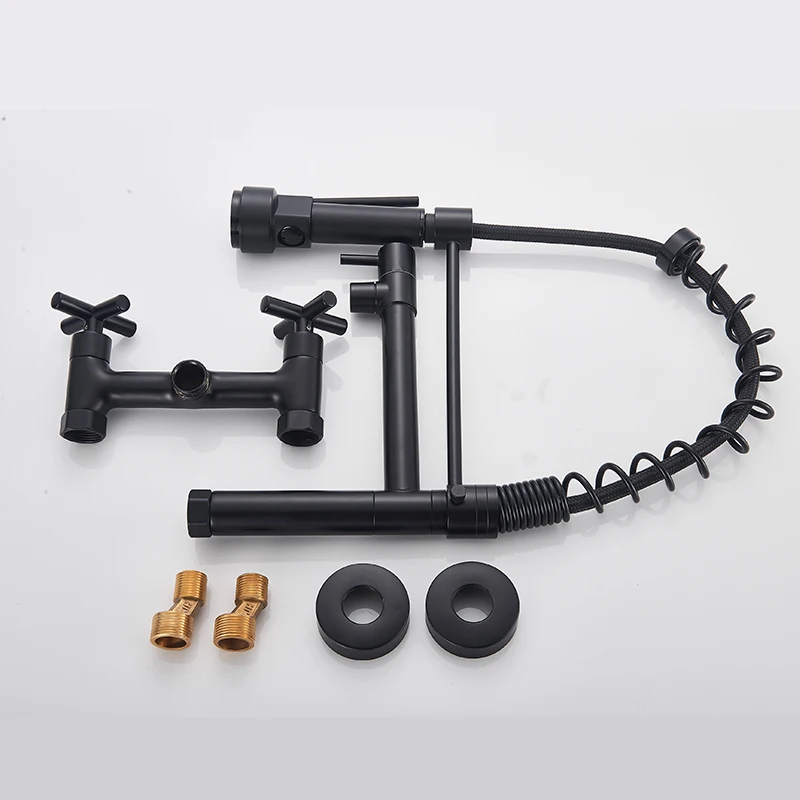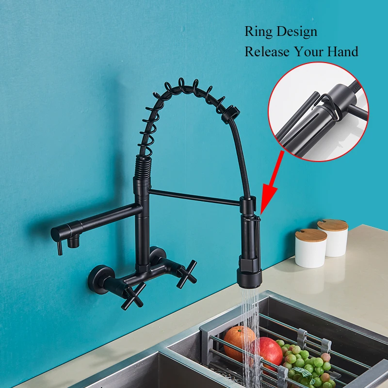 ติดผนังก๊อกน้ำห้องครัวฤดูใบไม้ผลิมือถือSpoutร้อนเย็นน้ำKitchen Tap MatteสีดำดึงRoationอ่างล้างจานTapเครน