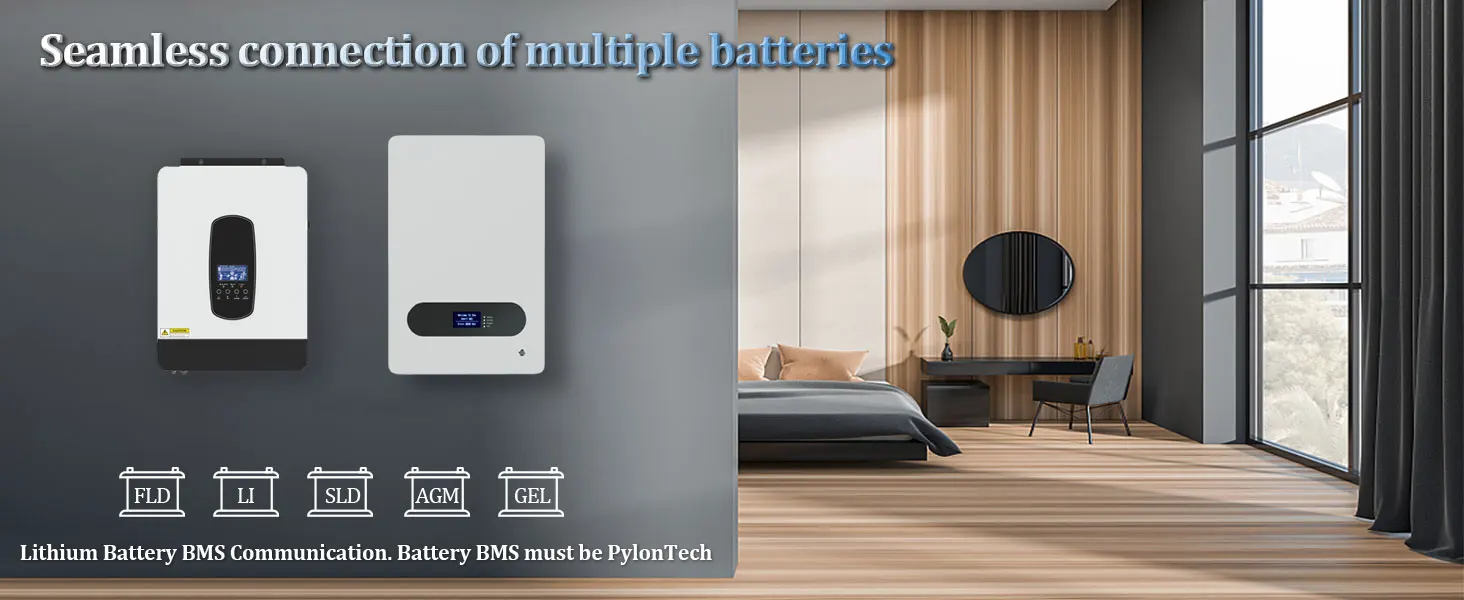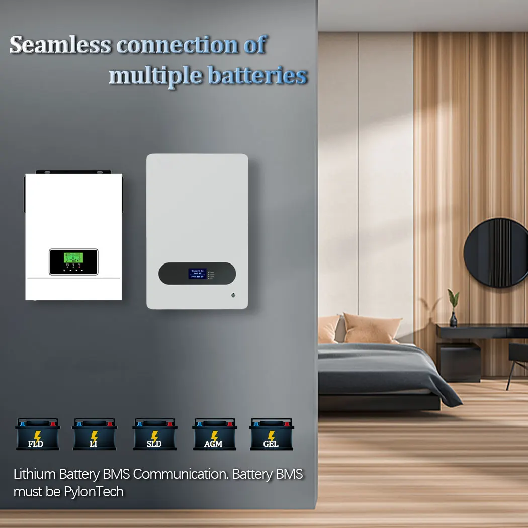 Bulit in 80amp mppt controller, which integrates solar energy storage &means charging energy storage and AC sine wave output.It can be widely used in DC to AC areas, such as solar AC power system, vehicle system, RV power supply, security monitoring system, emergency lighting system, field power system, household power system, etc.