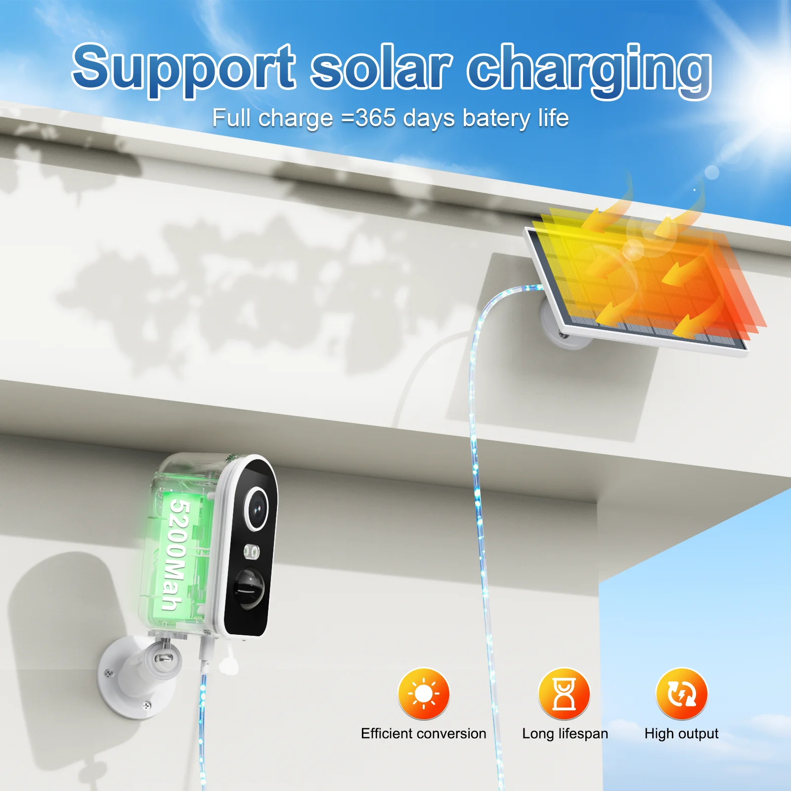 ทำงานอย่างมีประสิทธิภาพด้วยพลังงานแสงอาทิตย์ พร้อมแบตเตอรี่แบบชาร์จไฟได้ในตัวขนาด 5200mAh ทำให้มั่นใจได้ถึงการเฝ้าระวังอย่างต่อเนื่องโดยไม่ต้องชาร์จบ่อย