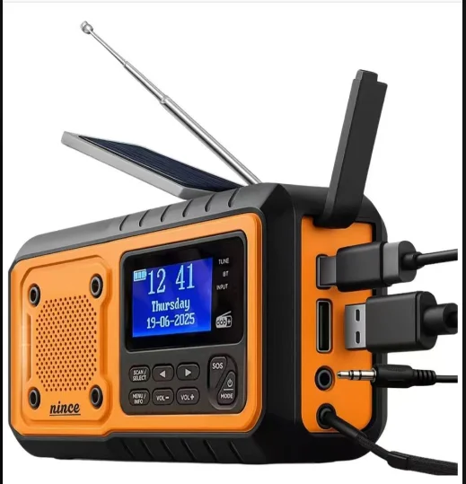 DAB376BT Crank วิทยุ DAB + FM BT วิทยุฉุกเฉิน 5000 mAh แบตเตอรี่พลังงานแสงอาทิตย์นาฬิกาปลุก Hand Crank Blackout ฉุกเฉินใช้