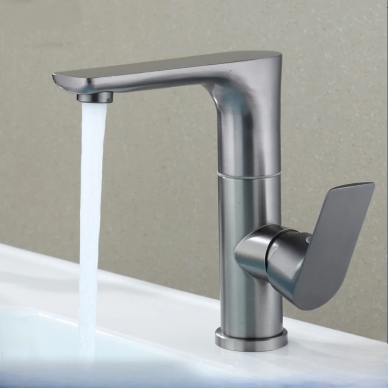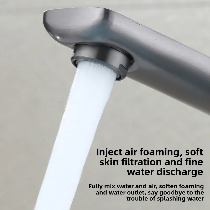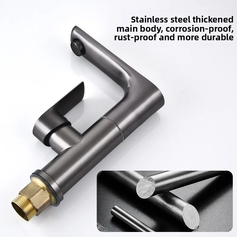 ก๊อกน้ําสแตนเลสร้อนและเย็น dual-ใช้ห้องน้ําอ่างล้างจานก๊อกน้ํา gunmetal สีเทา 360 องศาหมุนห้องน้ําก๊อกน้ําตู้