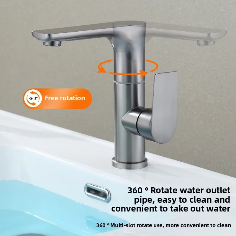 ก๊อกน้ําสแตนเลสร้อนและเย็น dual-ใช้ห้องน้ําอ่างล้างจานก๊อกน้ํา gunmetal สีเทา 360 องศาหมุนห้องน้ําก๊อกน้ําตู้ จาก 3 รีวิว