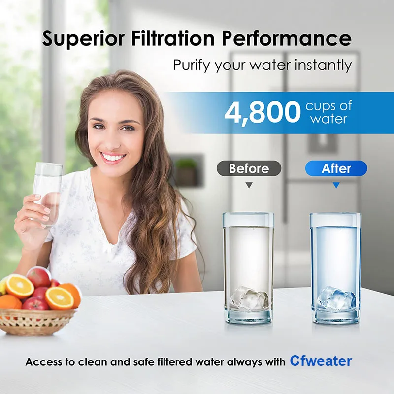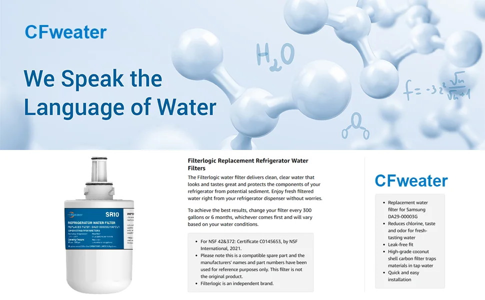 This DA29-00003G refrigerator water filter replacement, offers – a mix of prior filtration performance and certifications from the regulatory body in the industry – NSF 42 and NSF 372 certificates. Thanks to the Sri Lankan coconut shell carbon block, this replacement for Samsung water filter HAF-CIN EXP is effective against various materials.