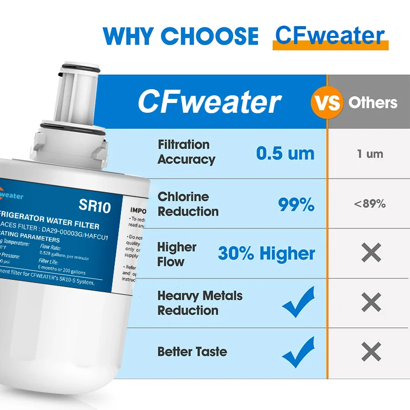 DA29-00003G fridge water filter reduces many substances from your water including 99% of Chlorine, taste, THM, VOCs, Particles, and all other major impurities, significantly improving the taste of drinking water to provide pure-tasting water, while retaining minerals beneficial to the human body.