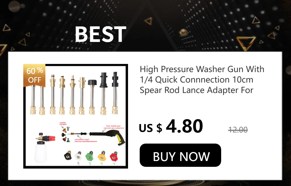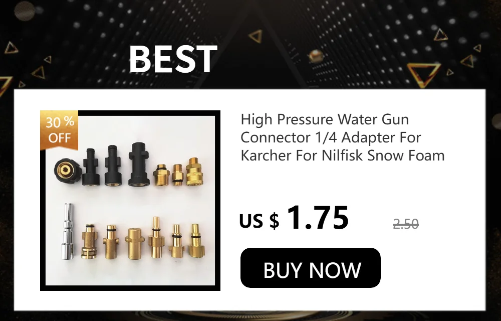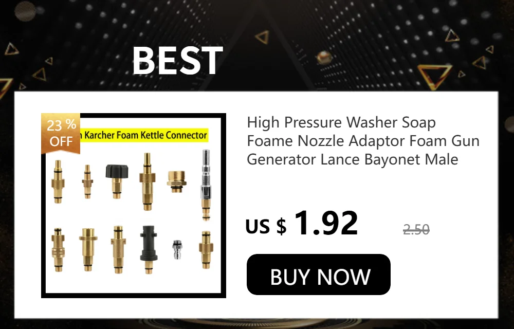 5.ความเข้ากันได้ดี, ข้อต่อและอะแดปเตอร์ที่แข็งแรง: ชุดอุปกรณ์มาพร้อมกับอะแดปเตอร์โลหะ Karcher (ถอดประกอบได้), ใช้ได้กับเครื่องฉีดน้ำแรงดันไฟฟ้า Karcher รุ่น K2, K3, K4, K5, K6, K7 (ไม่เหมาะสำหรับเครื่องฉีดน้ำแรงดัน Karcher K1700~K2050 ที่ใช้อะแดปเตอร์ประเภทอื่น)