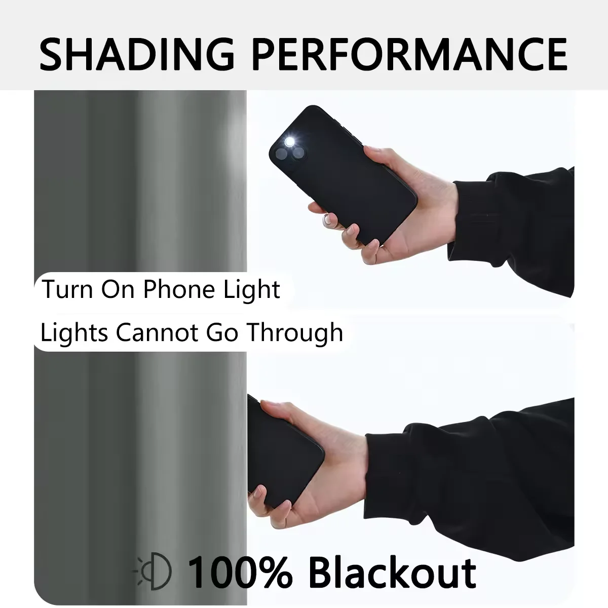 ชั้นด้ายสีดำด้านใน ช่วยบังแสงได้ 90% (สีเข้ม = ประสิทธิภาพดีกว่า)