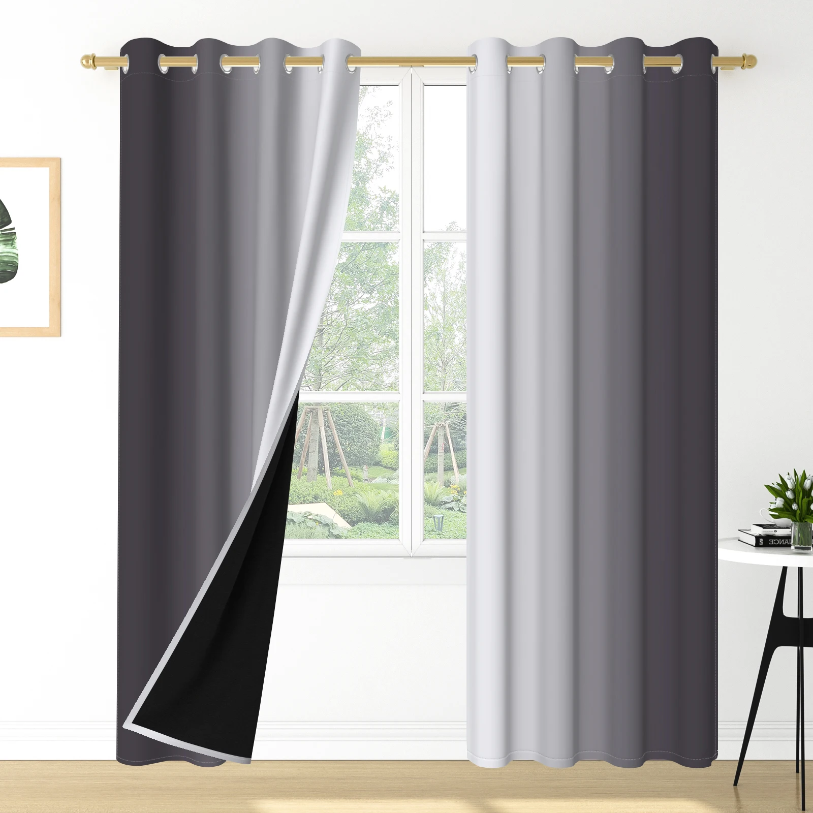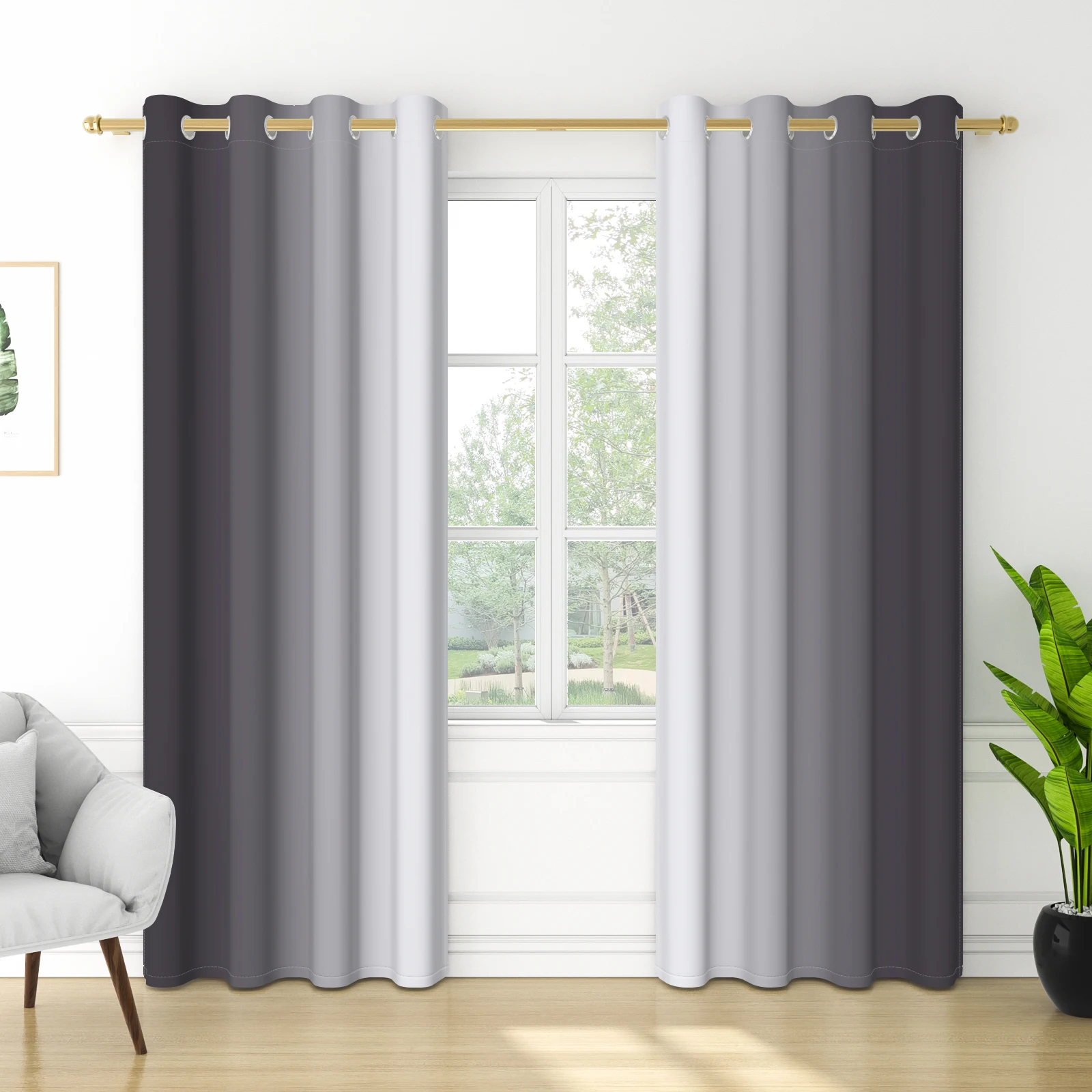 ผ้าม่านออมเบรแบบโมเดิร์น 2 ชิ้น สำหรับตกแต่งหน้าต่างห้องนั่งเล่นและห้องนอน ผ้าโพลีเอสเตอร์ไล่เฉดสี ป้องกันแสงและกันความร้อน