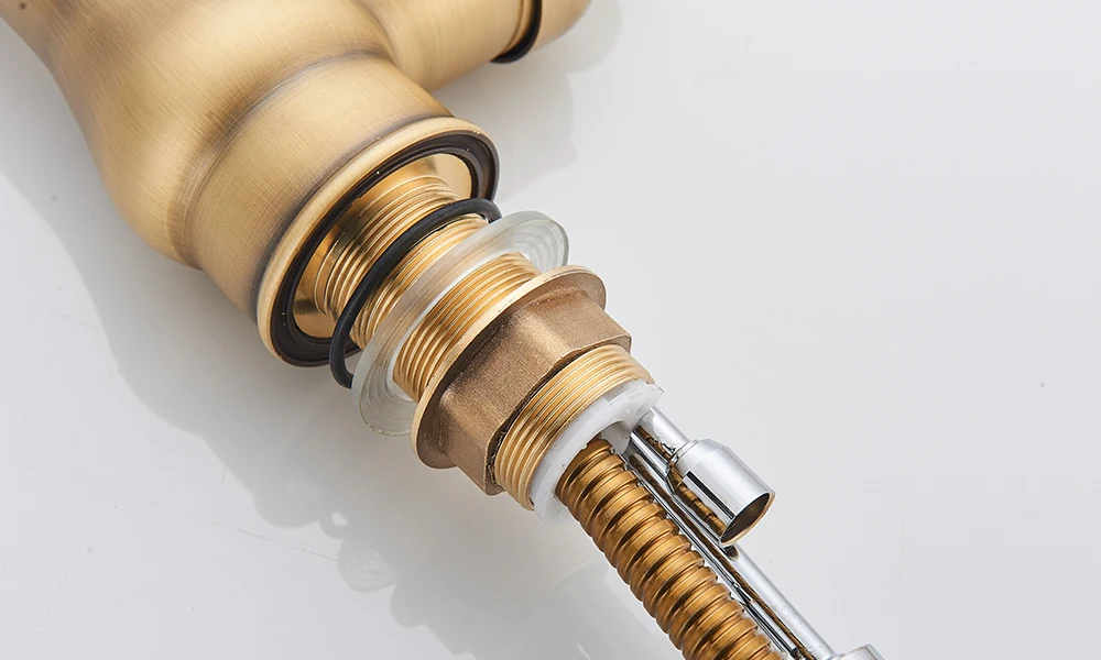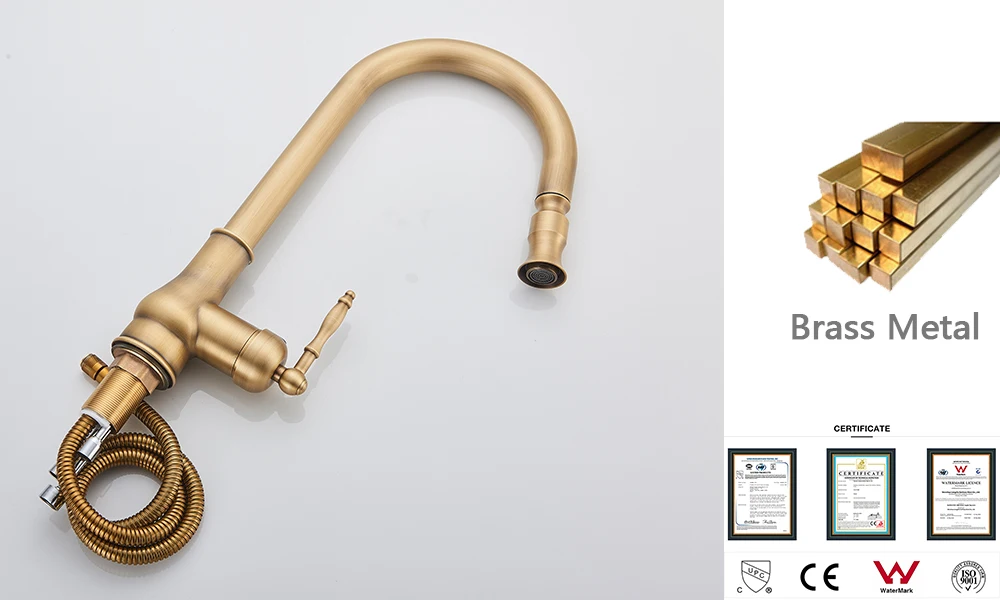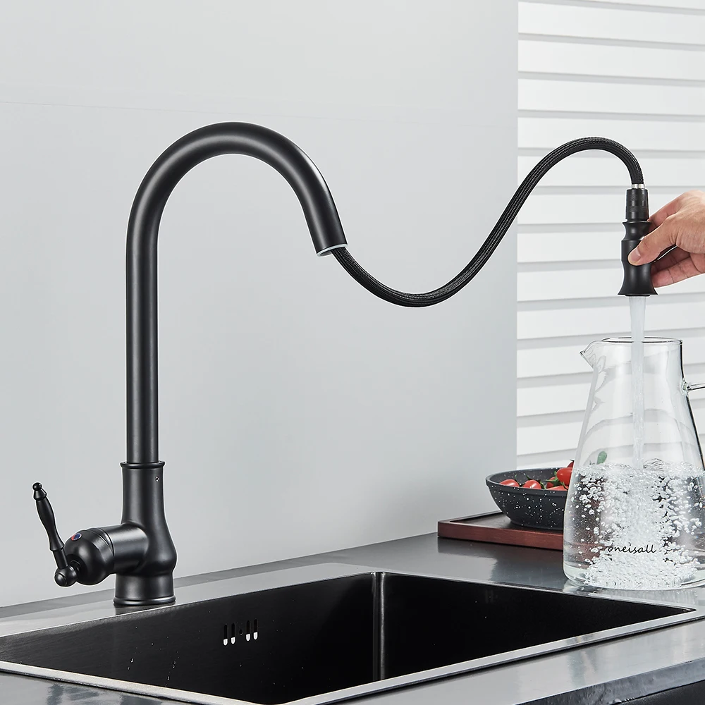 Rozin ทองเหลืองโบราณก๊อกน้ําห้องครัวดึง Spout ก๊อกน้ําห้องครัวสีดําเดี่ยวหมุนน้ําร้อนน้ําเย็น Kitchen Mixer Tap