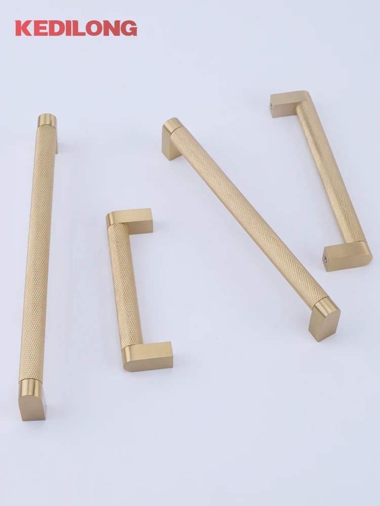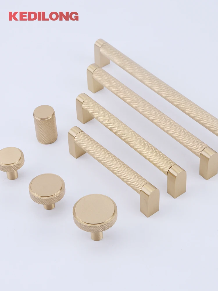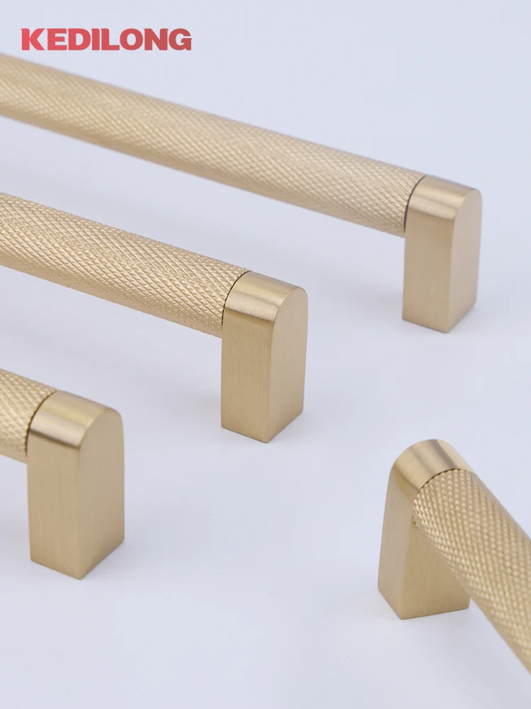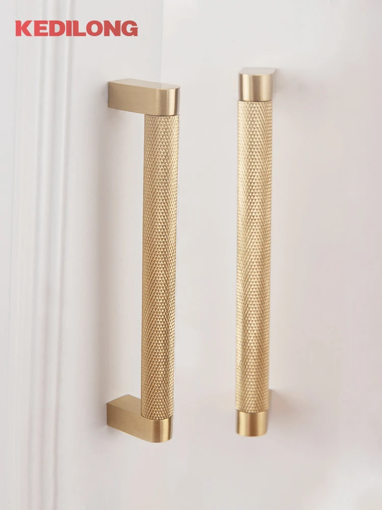 KEDLO ทองเหลืองยุโรปโมเดิร์นตาข่าย Knurling Handle ตู้ครัวดึงมือจับลิ้นชักทองแดง Handle