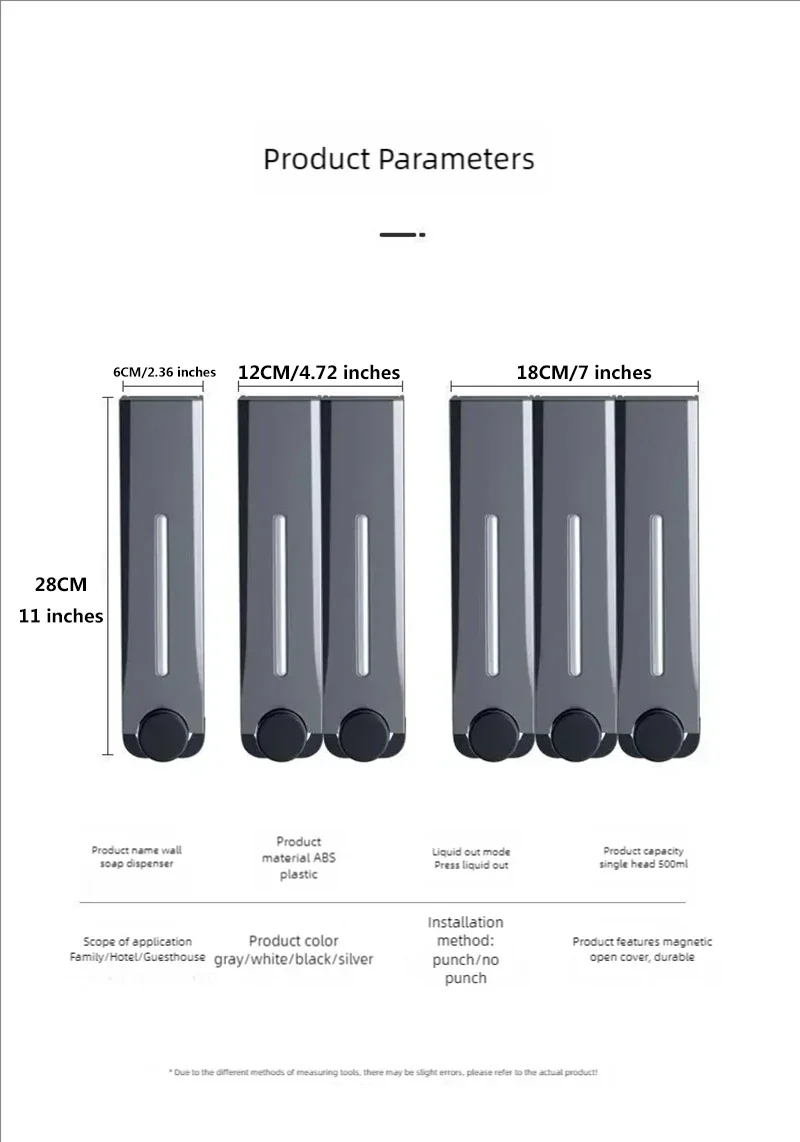 การประยุกต์ใช้: ตู้แชมพูอาบน้ํา 3 ห้อง เหมาะสําหรับห้องน้ํา โรงแรม ห้องออกกําลังกาย คลับ บ้านและสถานที่อื่นๆหมายเหตุ: เครื่องจ่ายแชมพูและครีมนวดผมบนผนังห้องอาบน้ําไม่เหมาะกับครีมนวดผม แชมพู ฯลฯ หรือคุณสามารถเจือจางโดยการเติมน้ําก่อน