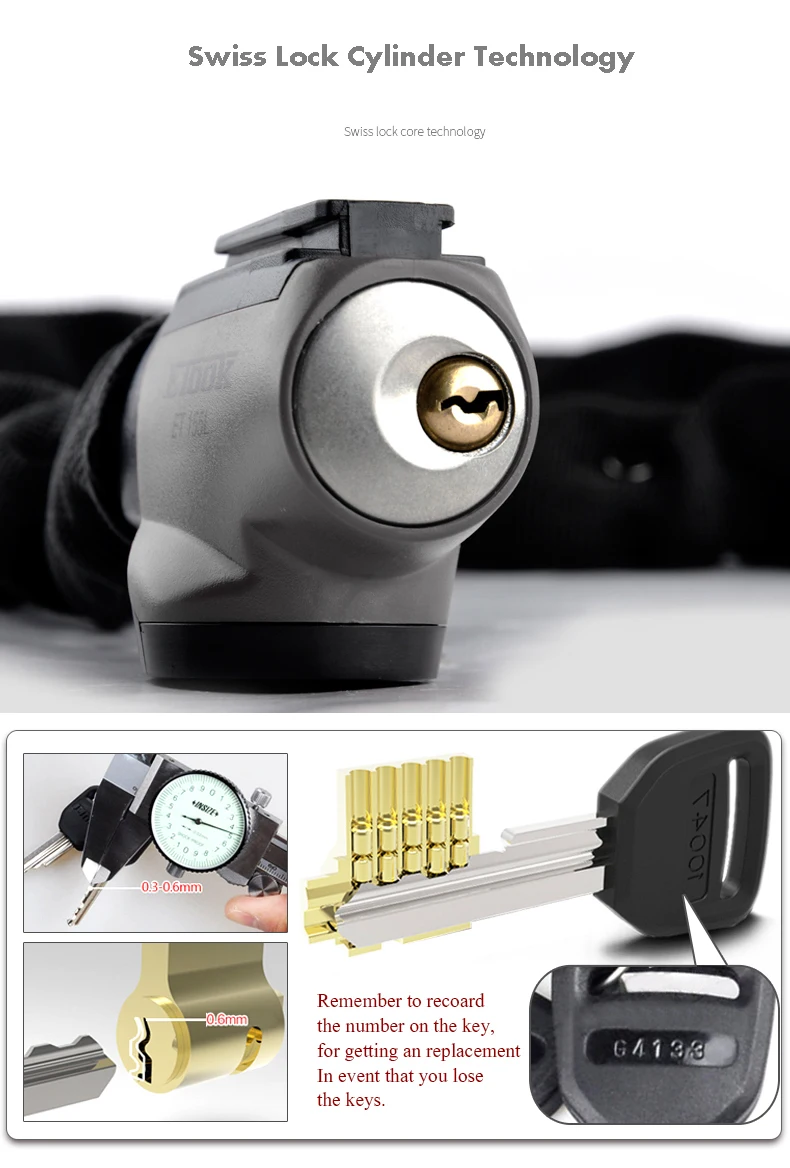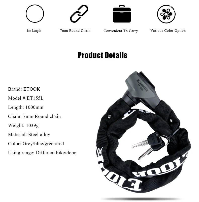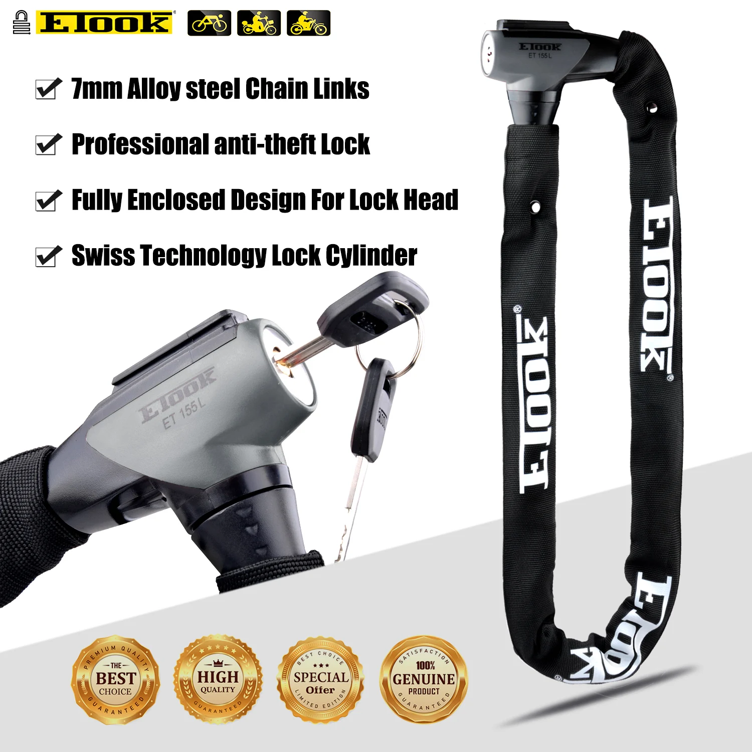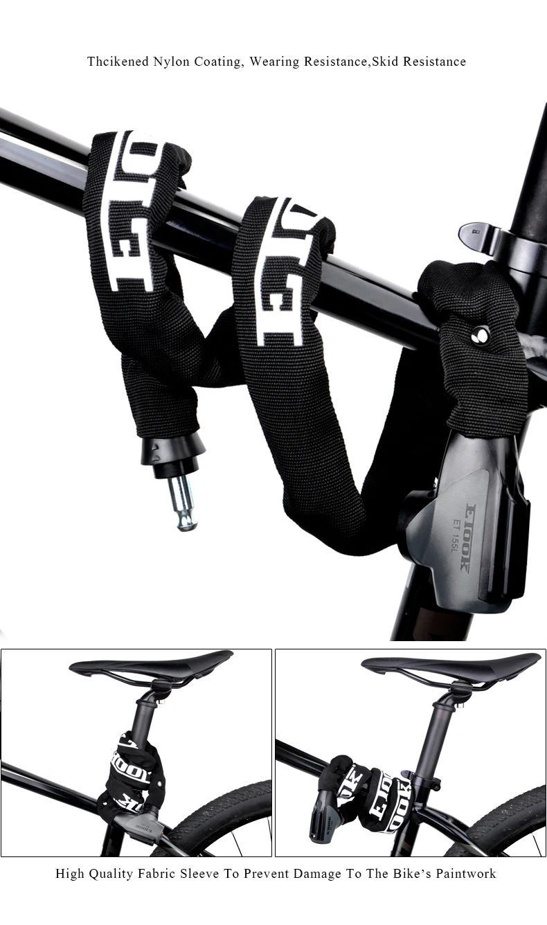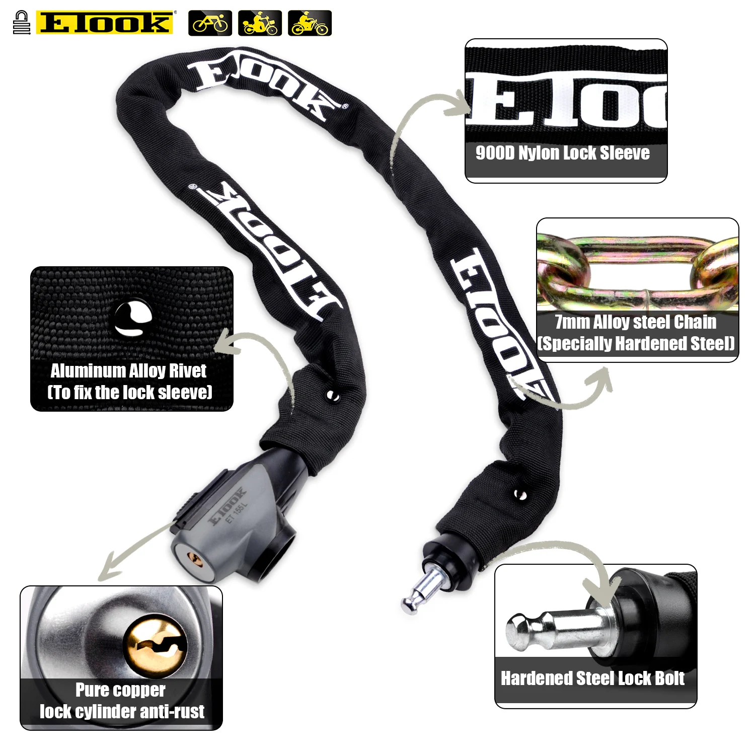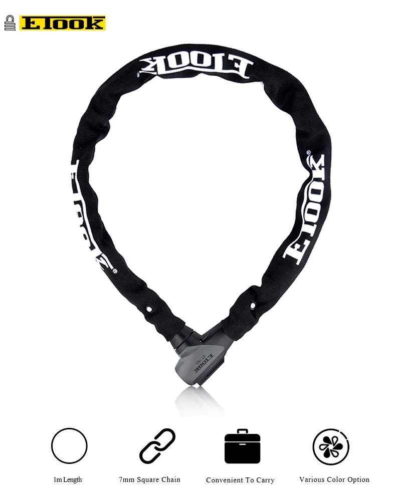 Etook ล็อคแบบพกพาจักรยานเสือภูเขาและถนนสกู๊ตเตอร์ล็อคทนทานผ้าไนลอน Anti Scratch Heavy Duty ยาว Anti Rust โซ่