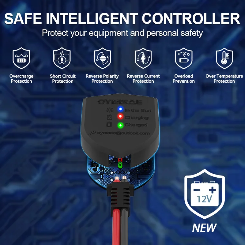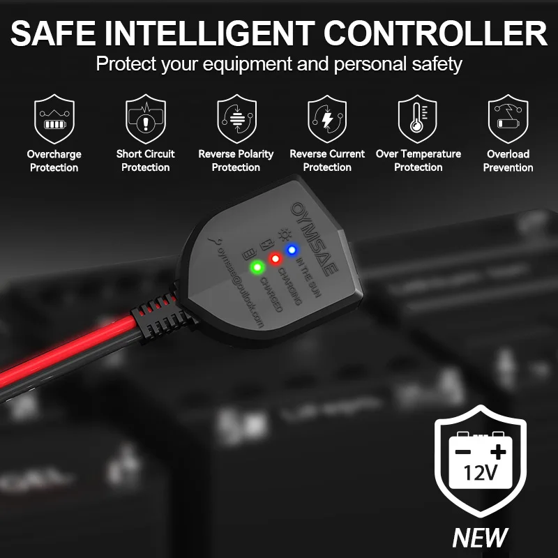 การป้องกันอัจฉริยะ: ไมโครโปรเซสเซอร์การชาร์จในตัว อัลกอริธึมการชาร์จที่ได้รับการปรับปรุง สามารถให้การป้องกันแรงดันไฟฟ้าเกิน การป้องกันการชาร์จไฟเกิน การป้องกันไฟฟ้าลัดวงจร ฯลฯสามารถป้องกันการชาร์จแบบย้อนกลับและสามารถใช้ได้อย่างปลอดภัยสำหรับการชาร์จและบำรุงรักษาแบตเตอรี่ 12V