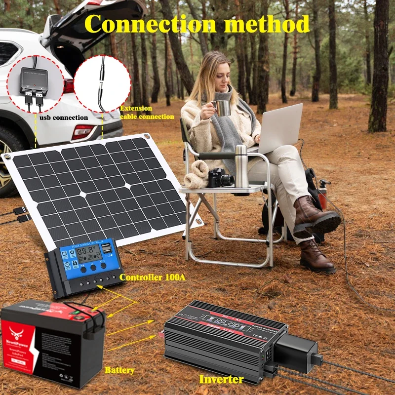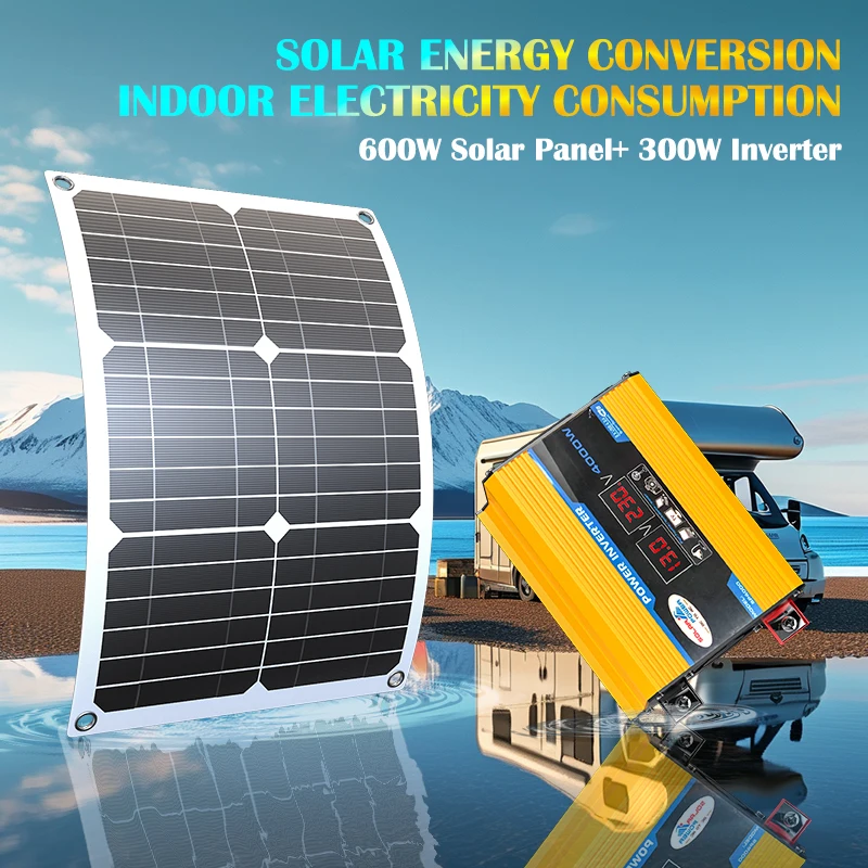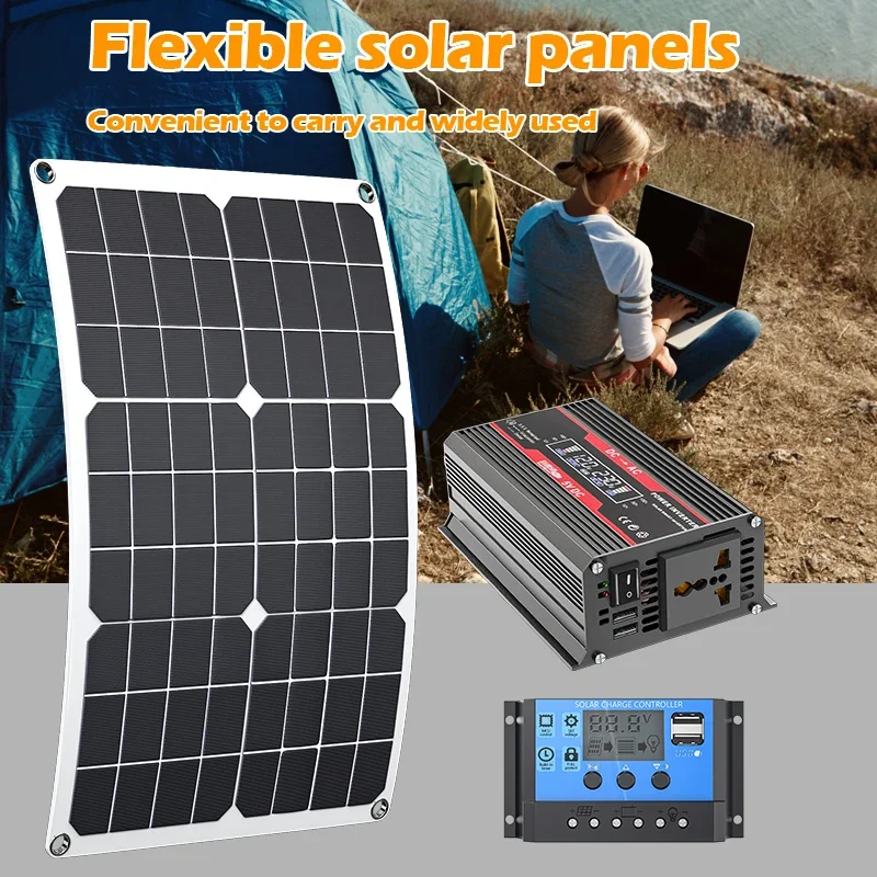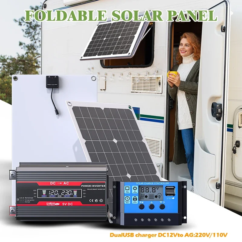 แผงโซลาร์เซลล์อินเวอร์เตอร์ 1000 วัตต์ แบตเตอรี่โซลาร์เซลล์ 12 โวลต์ ตัวควบคุม 10A 60A ชุดแผงโซลาร์เซลล์ สำหรับโทรศัพท์มือถือ รถบ้าน รถคาราวาน บ้านพักตากอากาศ แคมป์ปิ้งกลางแจ้ง