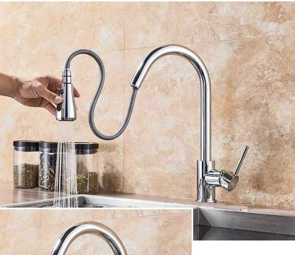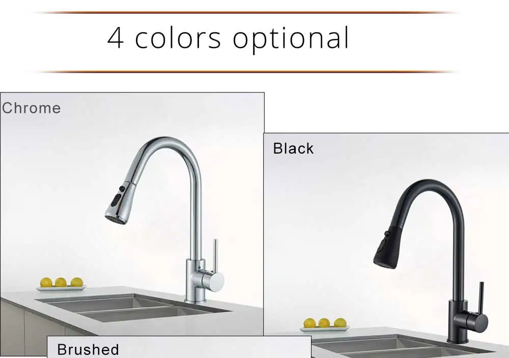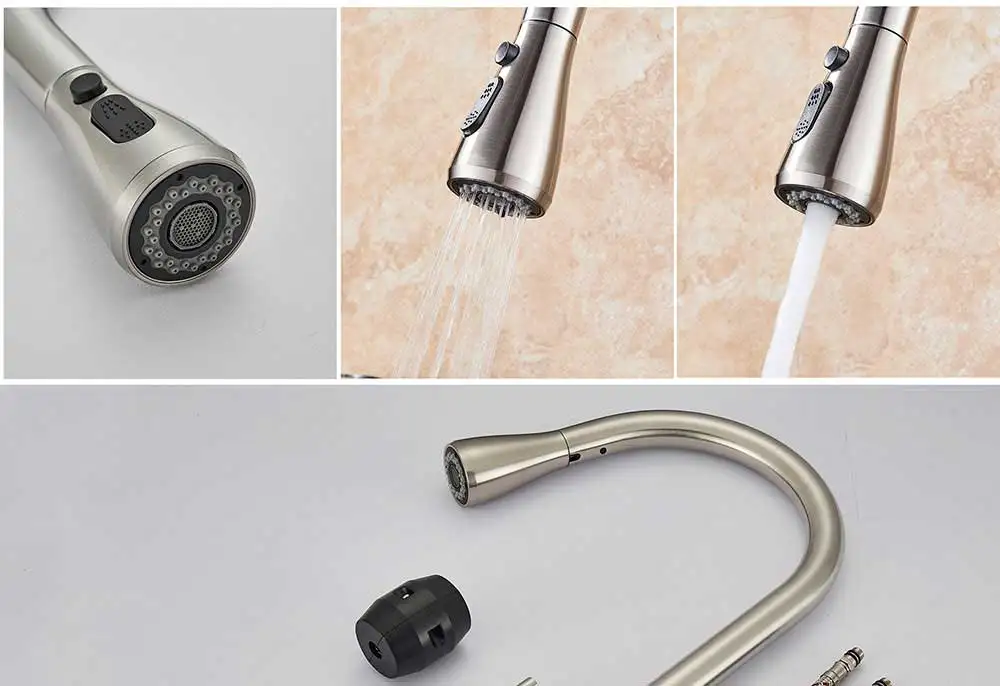 แปรงก๊อกน้ําผสมนิกเกิลหลุมเดียวดึง Spout อ่างล้างจาน Mixer Tap พร้อม Stream Sprayer หัว Chrome/Black KITCHEN TAP