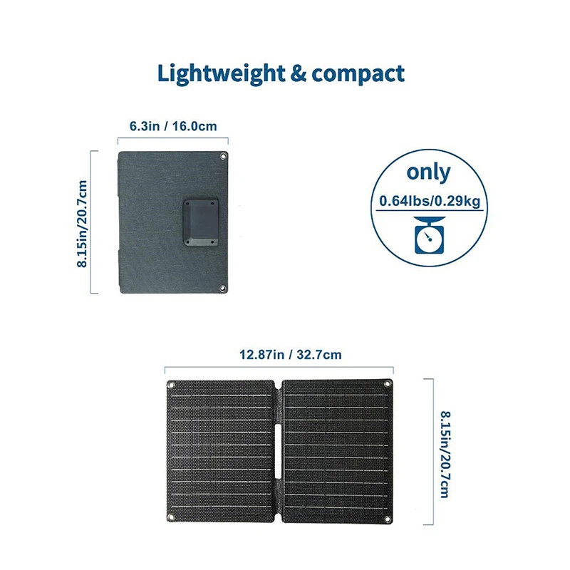แผงโซลาร์เซลล์พับได้ 20 วัตต์ พร้อมพอร์ต USB สำหรับชาร์จโทรศัพท์มือถือในกรณีฉุกเฉิน เหมาะสำหรับการตั้งแคมป์ ปีนเขา และกิจกรรมกลางแจ้ง
