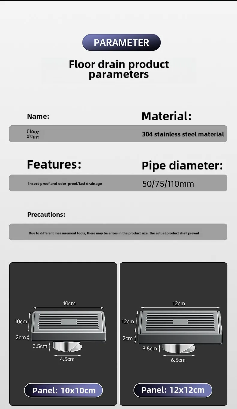 ท่อระบายน้ําพื้นสแตนเลสป้องกันกลิ่น 304, เส้นผ่านศูนย์กลางที่เพิ่มขึ้นและการเคลื่อนที่ขนาดใหญ่, บนหลังคาและลานภายในและกลางแจ้ง จาก 3 รีวิว