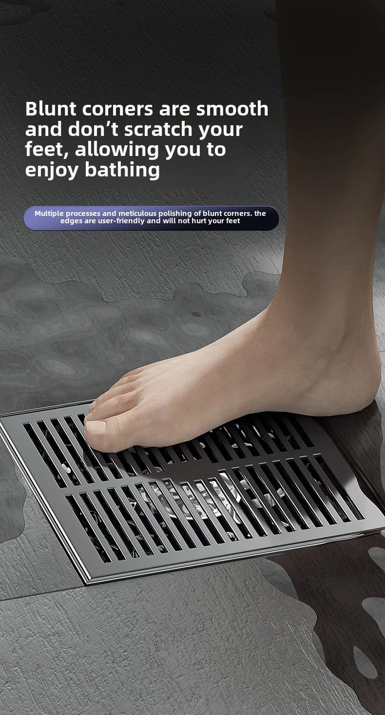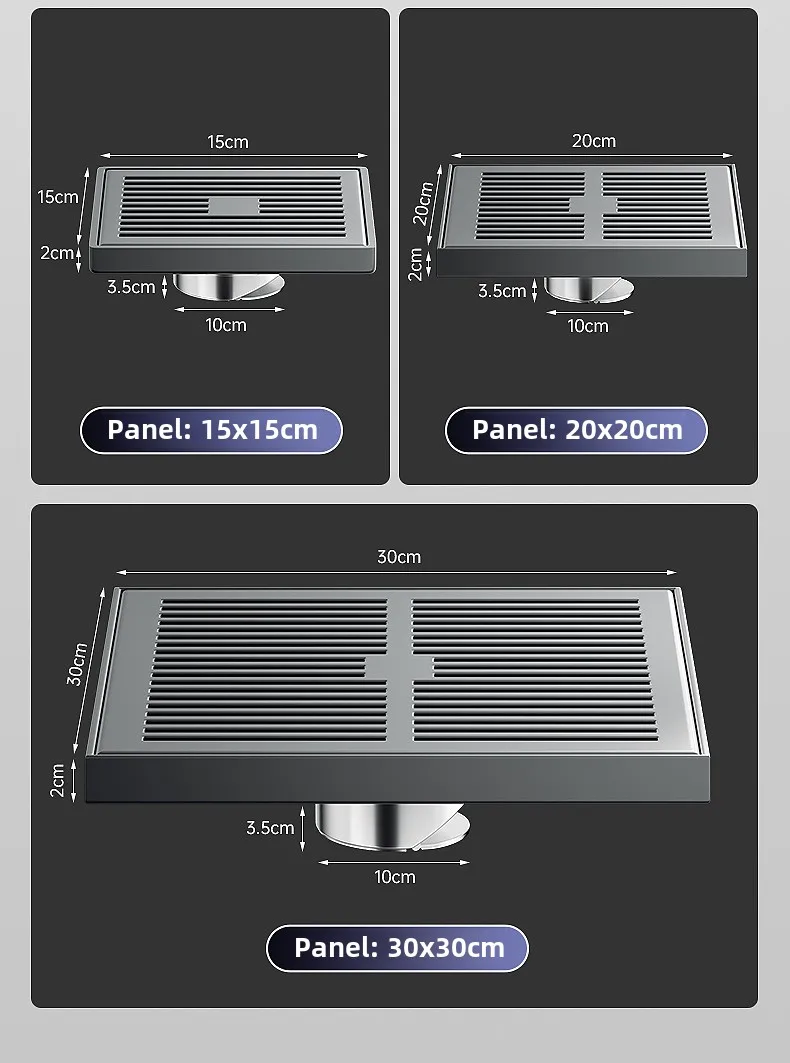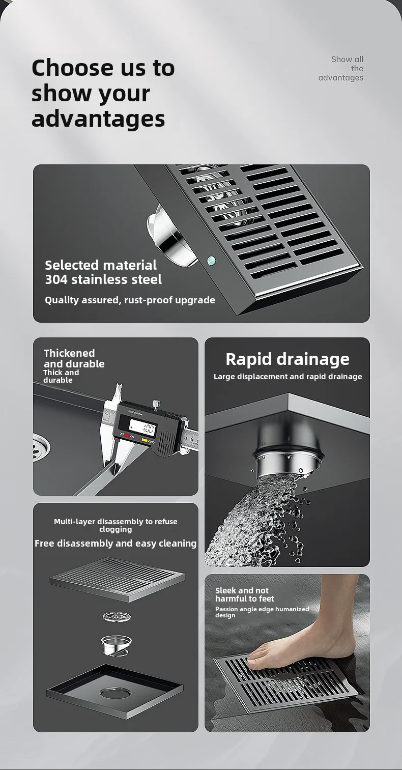 ท่อระบายน้ําพื้นสแตนเลสป้องกันกลิ่น 304, เส้นผ่านศูนย์กลางที่เพิ่มขึ้นและการเคลื่อนที่ขนาดใหญ่, บนหลังคาและลานภายในและกลางแจ้ง
