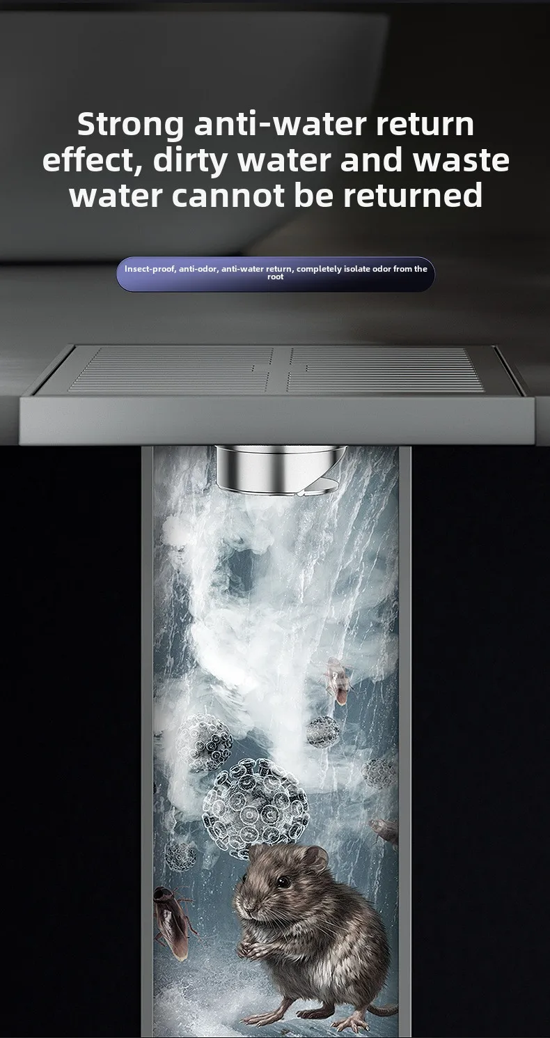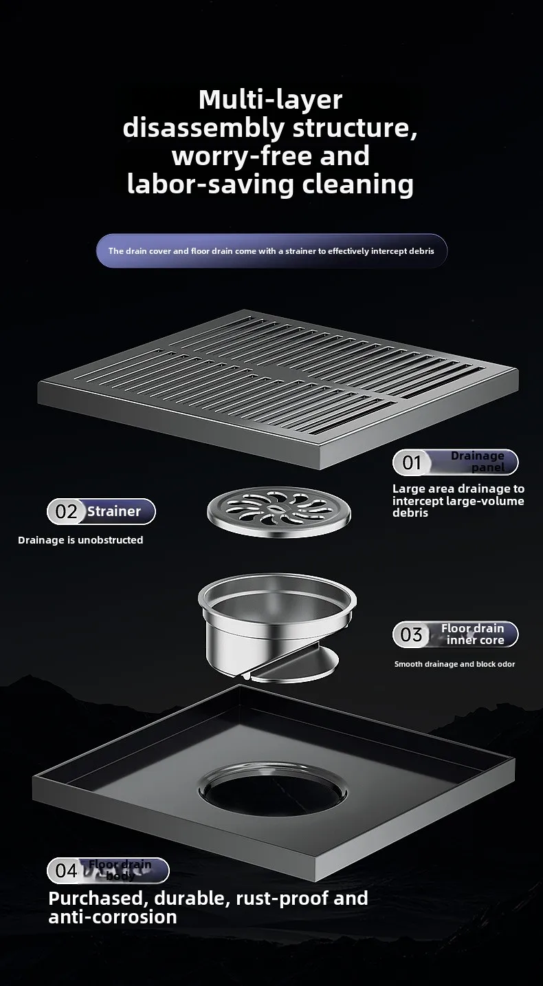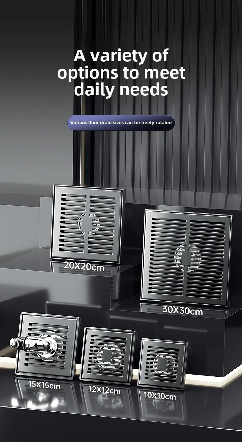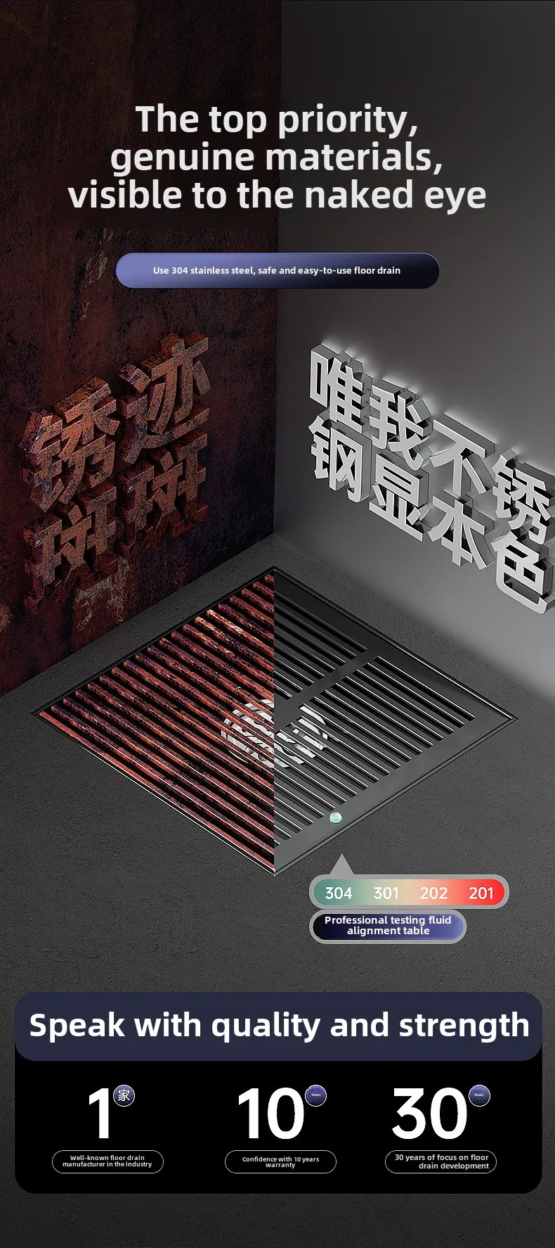 ท่อระบายน้ําพื้นสแตนเลสป้องกันกลิ่น 304, เส้นผ่านศูนย์กลางที่เพิ่มขึ้นและการเคลื่อนที่ขนาดใหญ่, บนหลังคาและลานภายในและกลางแจ้ง