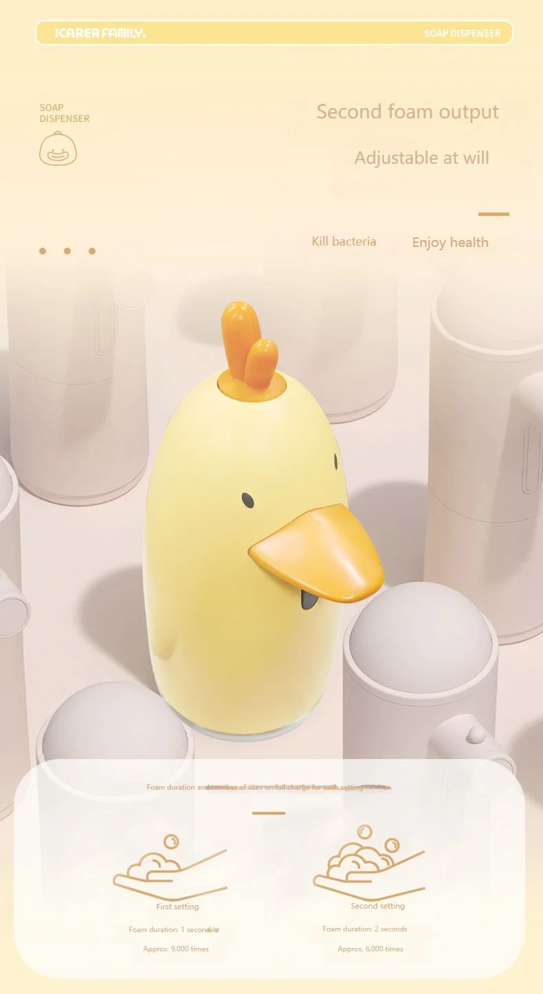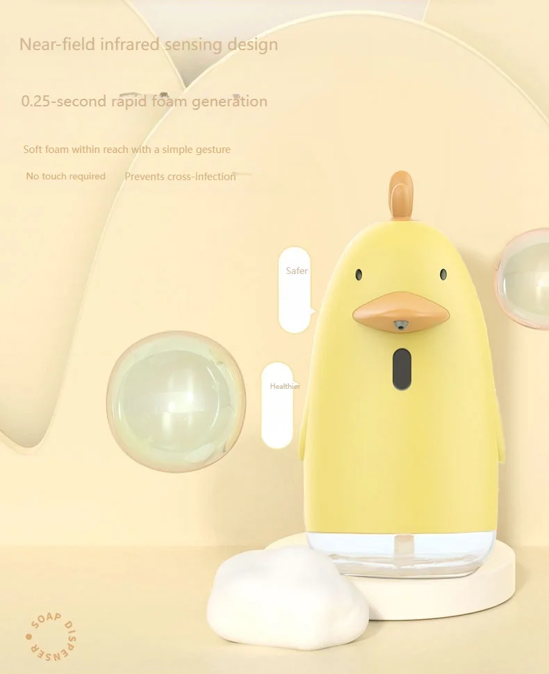 เครื่องจ่ายสบู่อัตโนมัติ ชาร์จ USB สไตล์การ์ตูนน่ารัก เซ็นเซอร์ไร้สัมผัส เครื่องล้างมือเด็ก เครื่องจ่ายสบู่โฟม