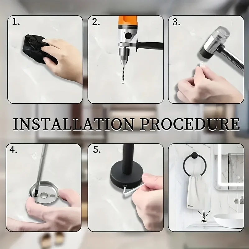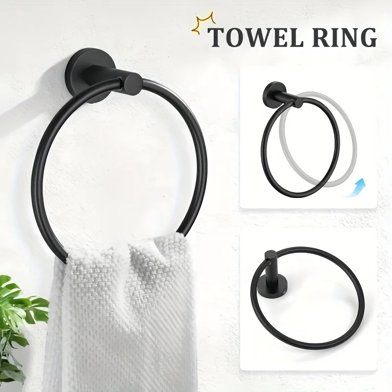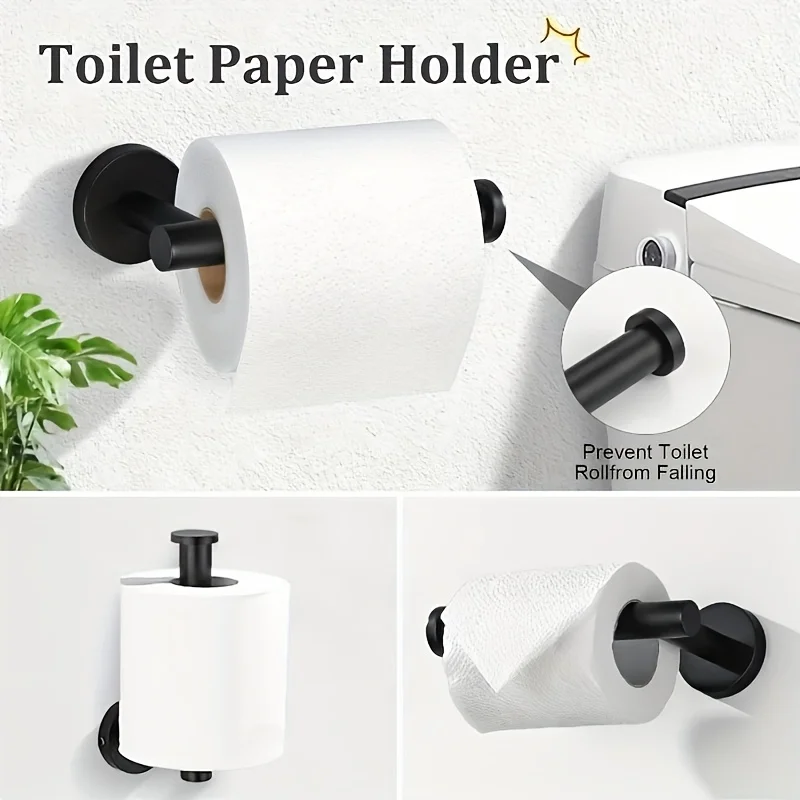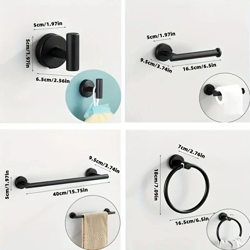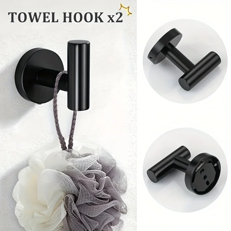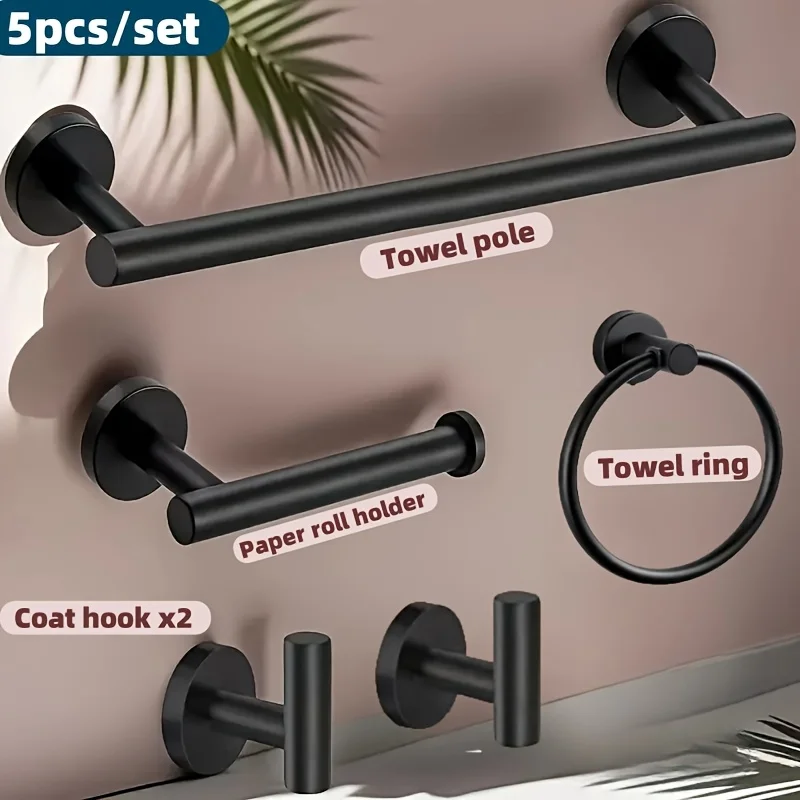 ชุดอุปกรณ์ห้องน้ำ 5 ชิ้น ติดผนัง สแตนเลส บาร์ผ้าเช็ดตัว แหวนผ้าเช็ดตัว ที่ใส่กระดาษชำระ ตะขอ อุปกรณ์ห้องน้ำ