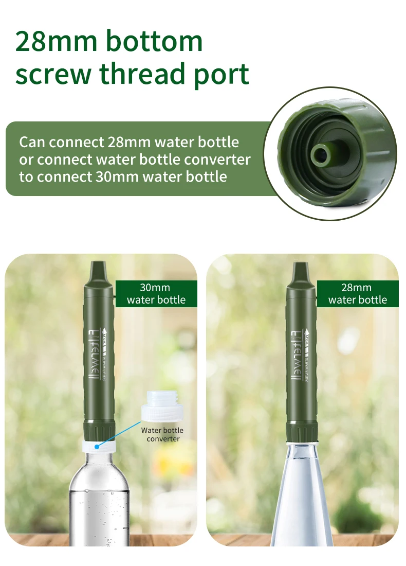 Filterwell Personal Camper เครื่องกรองน้ําฟางแบบพกพากลางแจ้ง Survival Hikeup ดื่มผลิตภัณฑ์ฉุกเฉินสําหรับการเดินทางหลอดกรองน้ําเป็นนวัตกรรมใหม่และพกพาสะดวก ออกแบบมาเพื่อให้น้ําดื่มสะอาดและปลอดภัยในแหล่งน้ํากลางแจ้งกะทัดรัดและน้ําหนักเบา: หลอดกรองน้ํามีขนาดเล็กและน้ําหนักเบา ทําให้พกพาสะดวกและพกพาสะดวกในกระเป๋าเป้สะพายหลัง ชุดอุปกรณ์ฉุกเฉิน หรือแม้แต่กระเป๋าเสื้อของคุณเทคโนโลยีการกรอง: ใช้เทคโนโลยีการกรองขั้นสูงเพื่อขจัดสิ่งสกปรก สารปนเปื้อนออกจากน้ํา ทําให้คุณมั่นใจได้ว่าคุณสามารถเข้าถึงน้ําดื่มสะอาดได้ทุกที่ใช้งานง่าย: การใช้หลอดกรองน้ําเป็นเรื่องง่ายเพียงจุ่มหลอดลงในแหล่งน้ํา (เช่น ลําธาร ทะเลสาบ หรือก๊อกน้ํา) จากนั้นดูดผ่านหลอดเพื่อดื่มกระบวนการกรองจะเกิดขึ้นเมื่อคุณดื่ม ทําให้สะดวกและเป็นมิตรต่อผู้ใช้รายการบรรจุภัณฑ์– 1 * หลอดกรองน้ํา– 1* ตัวแปลง– 1 * หัวเข็มขัด– 1 * สลิง– 1 * หัวทรายคุณสมบัติของสินค้าการกรองสามเท่า1.กรองหัวทรายกรองสารแขวนลอยที่มองเห็นได้ เช่น ตะกอนและวัสดุที่ลอยอยู่2.คาร์บอนไฟเบอร์ที่เปิดใช้งานสามารถดูดซับสารประกอบอนินทรีย์ กรดเบนโซอิก และสารประกอบอินทรีย์อื่นๆ ในสารละลายน้ํา ขจัดกลิ่นสีได้อย่างมีประสิทธิภาพ และปรับปรุงรสชาติ3.เมมเบรน UF 0.01 ไมครอนท่อไมโครไฟเบอร์กลวงช่วยขจัดสิ่งปนเปื้อนและปกป้องคุณจากน้ําที่ไม่ปลอดภัยระหว่างการผจญภัยกลางแจ้งการออกแบบหัวเข็มขัดที่ถอดออกได้สามารถเชื่อมต่อหัวเข็มขัดปีนเขาได้ พกพาสะดวก และสะดวกสําหรับการเดินทางคุณยังสามารถพกพาด้วยสลิงได้ปากเกลียว 28 มม.เหมาะสําหรับปากขวดเกลียวที่มีเส้นผ่านศูนย์กลาง 28 มม. หรือเชื่อมต่อตัวแปลงขวดน้ําเพื่อเชื่อมต่อขวดน้ําขนาด 30 มม.ง่ายต่อการใช้1.พกพาสะดวกกลางแจ้ง ใช้ซ้ําได้ ไม่ต้องกังวลเรื่องการอุดตันของตัวกรอง2.สามารถกรองลงในน้ําได้โดยตรงด้วยช่องเติมของหลอดกรอง3.เชื่อมต่อท่อต่อหัวทราย มันสามารถกรองตะกอนน้ํา ปกป้องส่วนหลังของตัวกรอง ยืดอายุตัวกรอง.อายุการใช้งานตัวกรองอยู่ที่ 4,000 ลิตร ซึ่งสามารถรับประกันความต้องการน้ําดื่มกลางแจ้งได้คําพบบ่อย 1.น้ําชนิดใดที่สามารถกรองได้?เหมาะสําหรับน้ําพุบนภูเขา แม่น้ํา ทะเลสาบ ลําธาร น้ําใต้ดิน น้ําฝน น้ําหิมะ น้ําผิวดิน น้ําประปา และแหล่งน้ําจืดอื่นๆ โดยไม่มีมลพิษทางเคมี(ไม่สามารถกรองน้ําทะเลได้ รีเวอร์สออสโมซิสสามารถขจัดโลหะหนักและเกลือได้)2.สามารถอยู่ได้นานแค่ไหนโดยไม่ต้องใช้งาน?สามารถเก็บไว้ได้ 3-5 ปี ขึ้นอยู่กับวันที่ซื้อ3.สามารถใช้ได้กี่ครั้งหรือนานแค่ไหน?