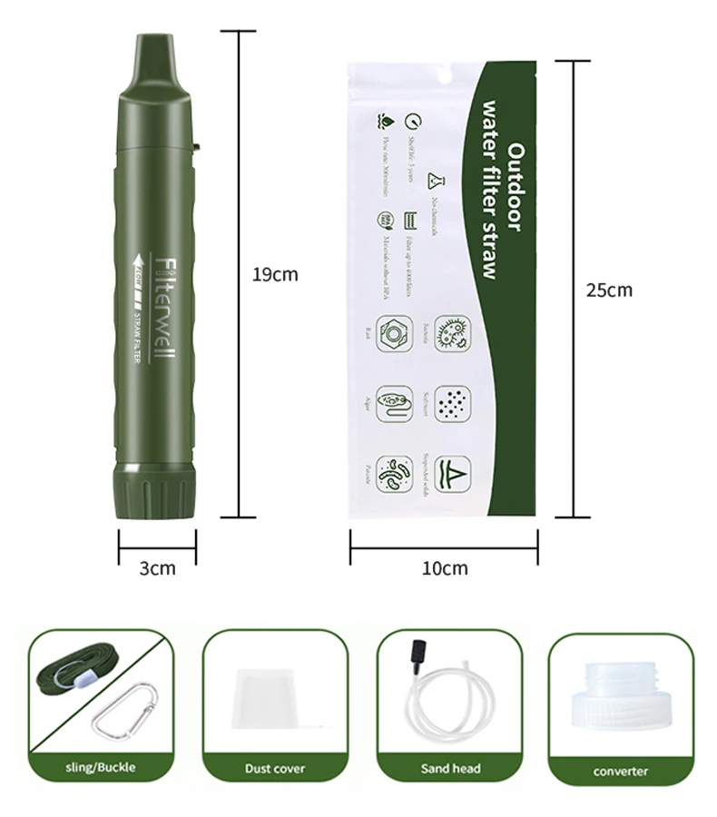 Filterwell Personal Camper เครื่องกรองน้ําฟางแบบพกพา Outdoor Survival Hikeup ดื่มผลิตภัณฑ์ฉุกเฉินสําหรับการเดินทาง