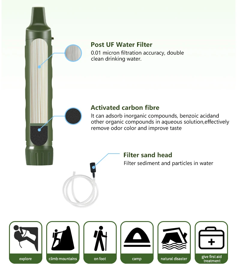 | outdoor personal survival water filter straw |
