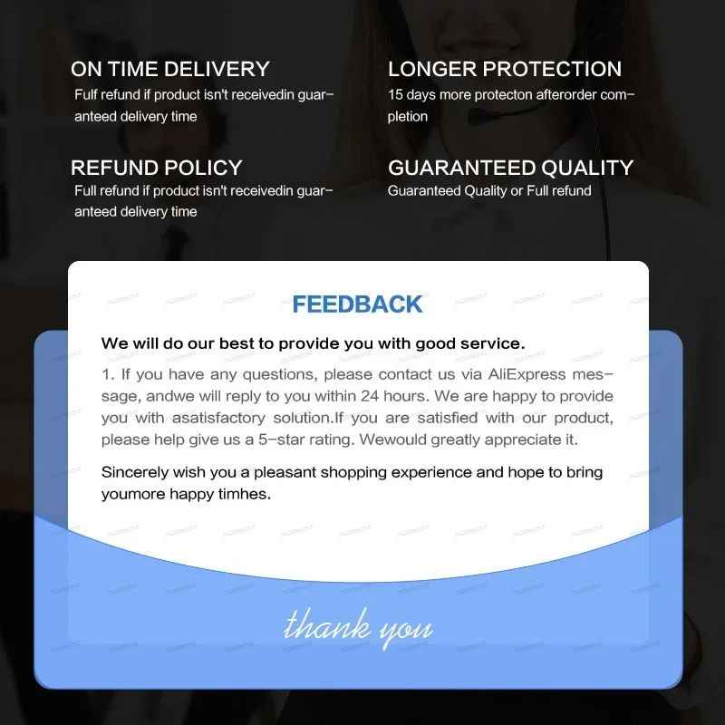 หากคุณพอใจกับการซื้อและบริการของเรา โปรดให้คะแนน 5 ดาวและแสดงความคิดเห็นเชิงบวกเราจะให้รางวัลคุณด้วยส่วนลดสำหรับการสั่งซื้อครั้งต่อไปของคุณ