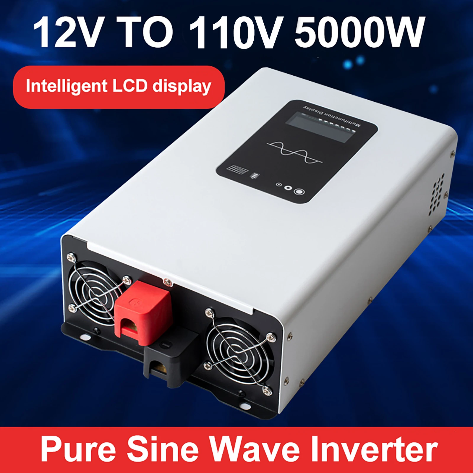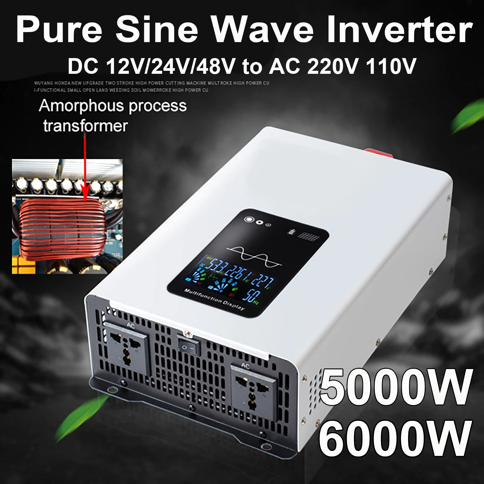 อินเวอร์เตอร์พลังงานแสงอาทิตย์ 5000W 6000W 12V/24V/48V เป็น 220V 110V สำหรับรถยนต์ บ้าน และระบบออฟกริด แบบ Pure Sine Wave