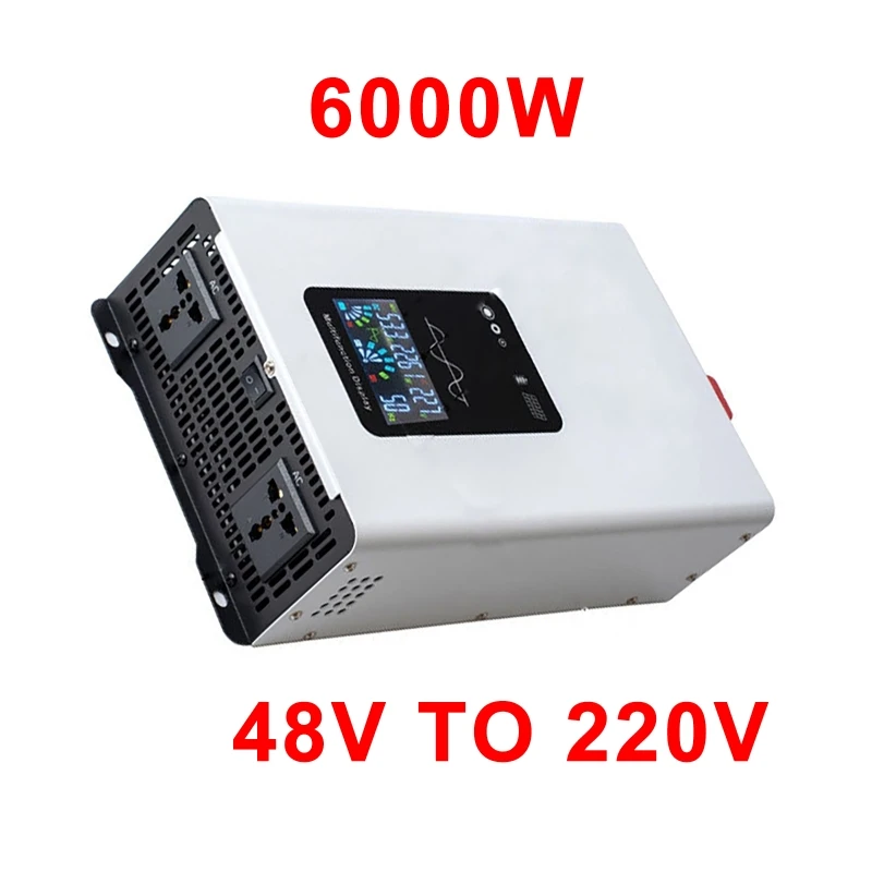 6000W 48V ถึง 220V พลังงานแสงอาทิตย์อินเวอร์เตอร์พลังงานแสงอาทิตย์รถบ้าน Off-grid ไฟฟ้าโซลาร์เซลล์ Pure Sine Wave อินเวอร์เตอร์